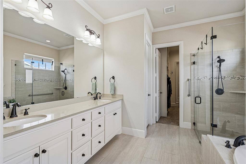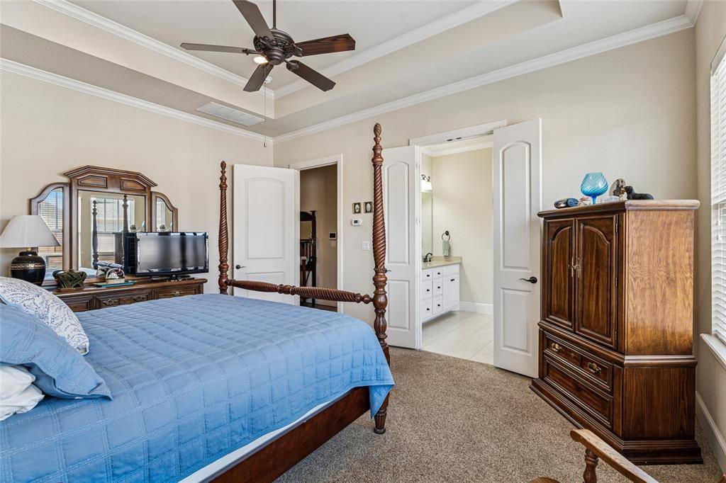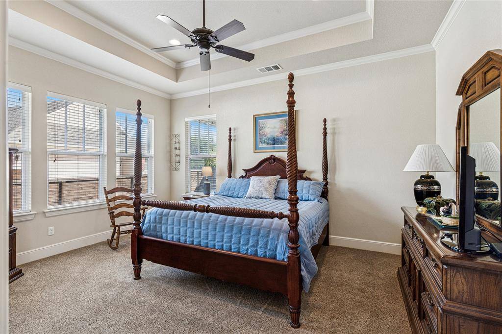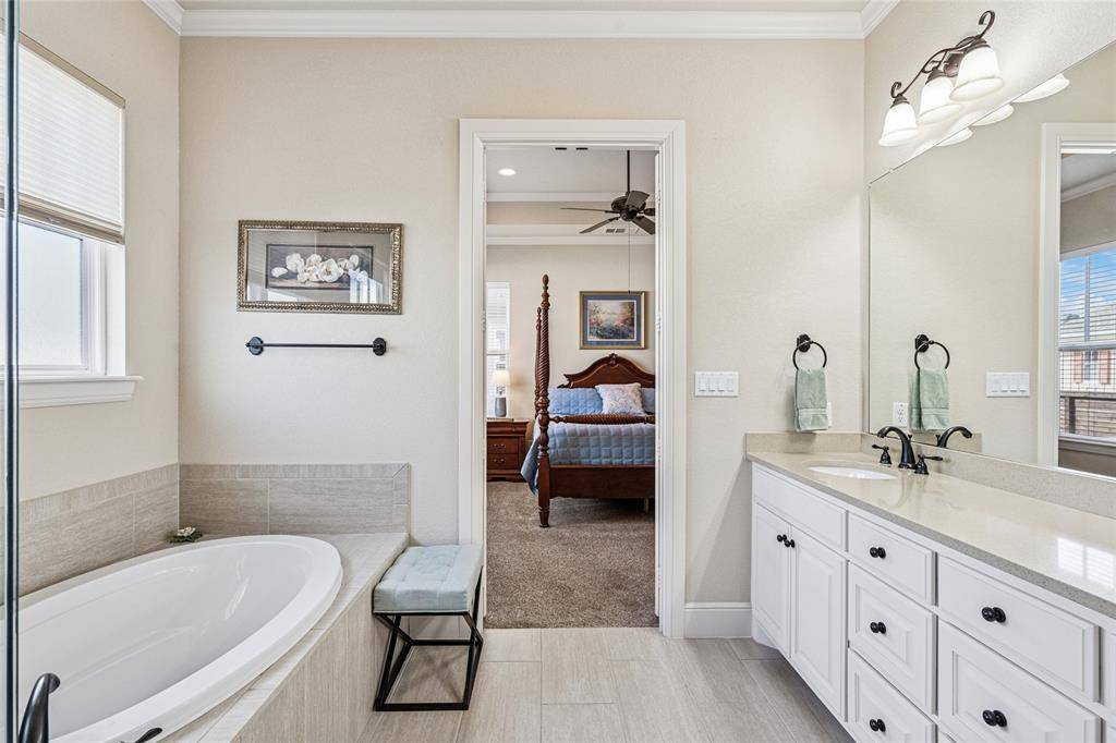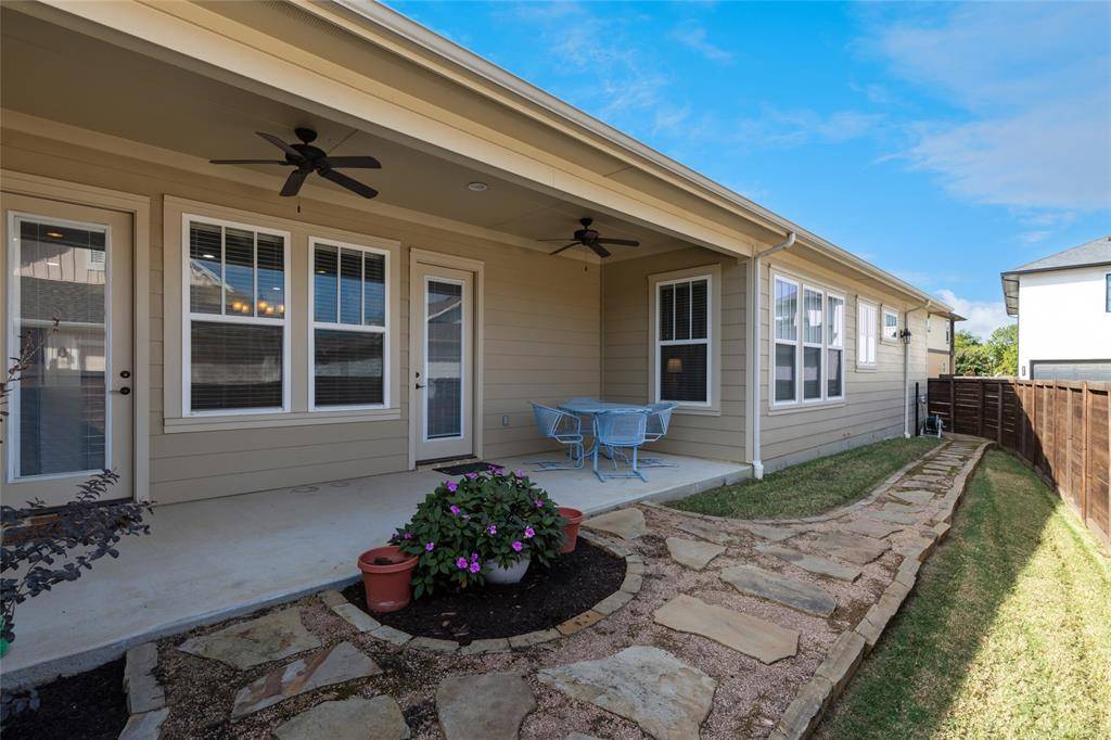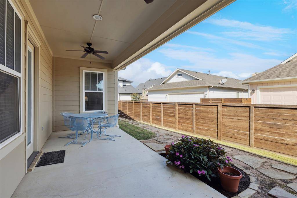 The spacious primary suite serves as a private retreat, complete with dual vanities, a deep garden tub, a separate shower, and an oversized walk-in closet. Step outside to enjoy the covered side patio, ideal for unwinding in the evenings or hosting gatherings year-round.