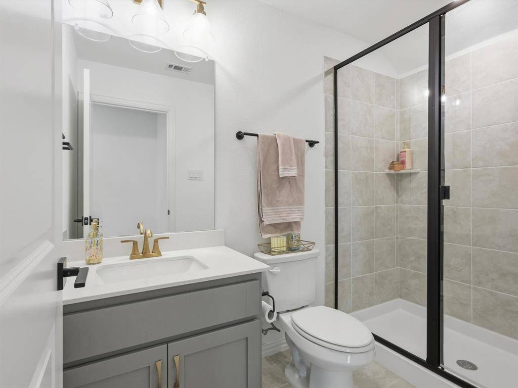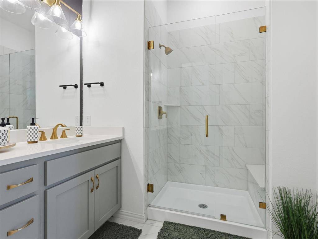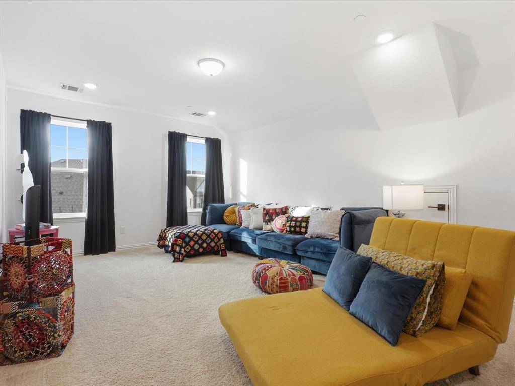 The private primary suite offers dual vanities, a linen closet, and a frameless glass shower with upgraded hardware. A versatile third floor includes a large game room, additional bedroom, and full bath—ideal for guests, media, or home office use.