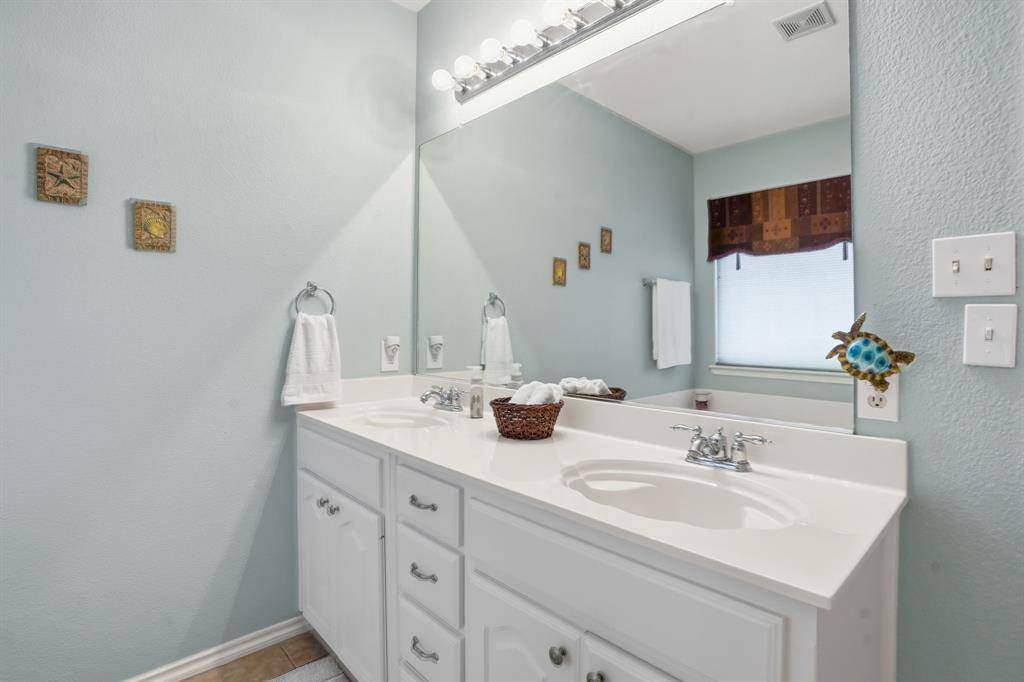 From first glance one will be taken in by this charming single-story home. A former DR Horton model and boasting 1749 sqaure feet of living, the property is sited on a premier corner lot in close proximity to the neighborhood pool and play ground. The functional floor plan offers an oversized family room, charming dining area, three bedrooms, two full bathrooms, a gourmet kitchen complete with light quartz counters, upgraded 42-inch oak cabinetry, subway tile backsplash, an undermount sink, and a gas drop-in range; a utility area with cabinetry, and an attached two-car garage with work bench and shelves. Quality abounds throughout the home with a large primary suite with crown molding and a luxurious bathroom, a second bedroom with a sitting area before bay windows, vaulted ceilings, gracious windows, luxury vinyl plank floorings, repainted interior, stone-trimmed flower beds, a water line to garage for a fridge, a plethora of storage and top-of-the line Leaf Guard rain gutters. The nicely landscaped backyard with stone back wall offers a relaxing screened-in patio, Trex deck, custom pergola, mature trees, a nice-sized storage shed, and an upgraded cedar wide-plank fence. This home feeds the award-winning Keller ISD and is located a short commute to major highways, local eateries and upscale shopping.