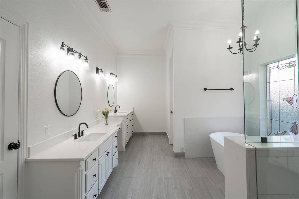 MUST SEE! Come feel at home in this recently renovated estate surrounded by mature trees in a premium lot facing a green belt with easy access to an open field, walking trails that lead to Northfield park and direct sight to neighborhood playground of JB Sandlin Park. Upon entering this exquisite 4 bedroom 4.5 bath estate you are immediately greeted by a grand staircase that leads you to an open living room and or playroom with a wet bar and 2 bedrooms. Stunning white oak wood floors in primary bedroom as well as the main living areas.The grand primary suite with plenty of natural light, private access to the beautiful backyard, double vanity sinks, large shower and a costume walk in closet. Stunning kitchen with built in fridge, stainless steal appliances, large sink with disposal and a built in ice machine that is much needed most of the year! Open floor plan concept makes this home perfect for entertaining and creating family memories. Work in the comfort of your own home with floor to ceiling built in cabinets and a breathtaking view of the front yard and green belt. Not a fan of doing laundry, well this huge laundry room may change your feelings with plenty of storage, room for extra freezer and or fridge, counter space for folding and pantry. 3 car garage with epoxy floors, built in cabinets and drawers with sink. The large driveway can also accommodate additional parking if needed. According to the floor plans, an additional bedroom can be added on the second floor.