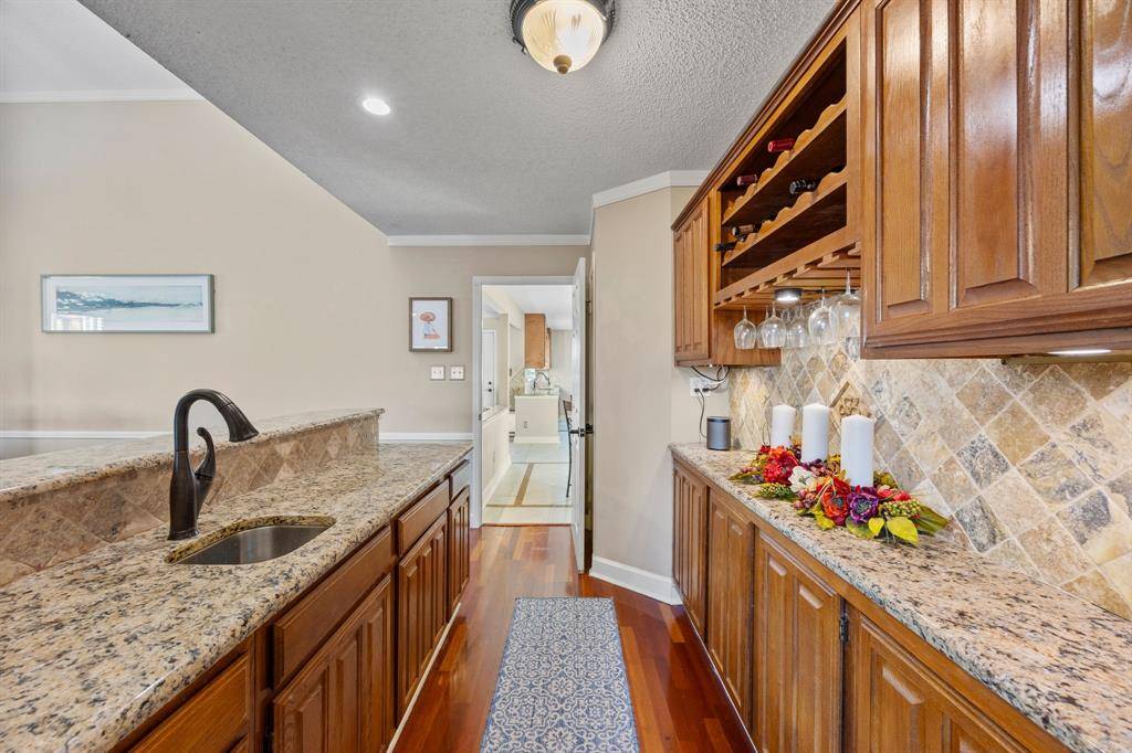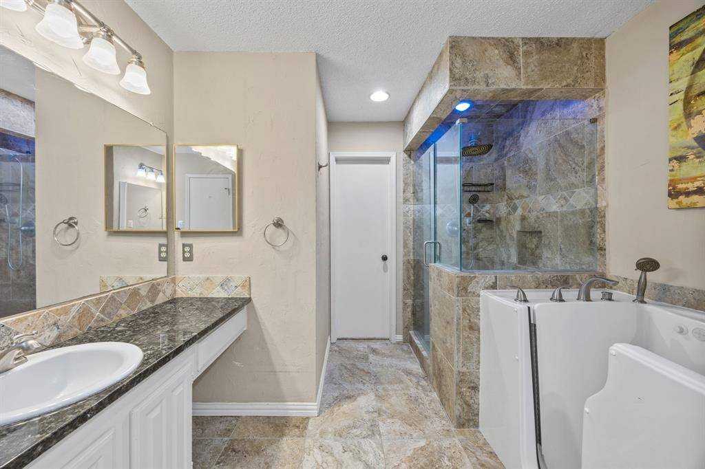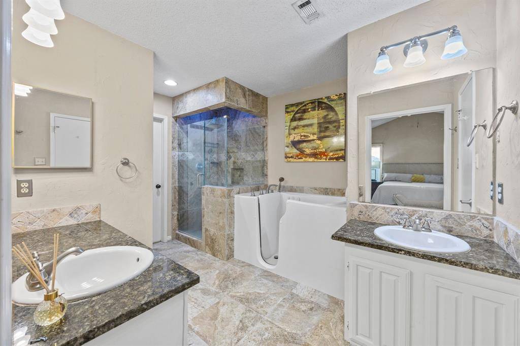 This stunning one-story home offers the perfect blend of location, near Alliance, comfort, and effortless entertaining in highly sought-after Keller ISD. Rich Brazilian cherry wood floors lead you through spacious formal living and dining areas, highlighted by a built-in wet bar with granite countertops and abundant storage—ideal for hosting. The open family room flows seamlessly into the kitchen, where custom cabinetry, granite countertops, and stainless steel appliances create a warm, functional heart of the home. An oversized utility room adds exceptional convenience with a pantry, extensive cabinetry, and plenty of workspace. Step outside to a private backyard designed for memorable evenings. Enjoy colorful sunset views from the covered patio and cool off in the sparkling saltwater pool, complete with a removable kiddie fence for peace of mind. A large storage building adds extra flexibility for tools, hobbies, or additional storage. This home also stands out for its energy efficiency and major system updates: attic spray-foam insulation and Low-E windows, plus key upgrades all new since 2019 including a complete 18 SEER HVAC system with new air ducts, 2020 water heater, roof 2020, and pool pump 2025. The serene primary suite feels like a personal retreat with a spacious walk-in shower, jetted walk-in tub, granite countertops, and beautiful tile finishes. A sprinkler system adds ease to outdoor care.