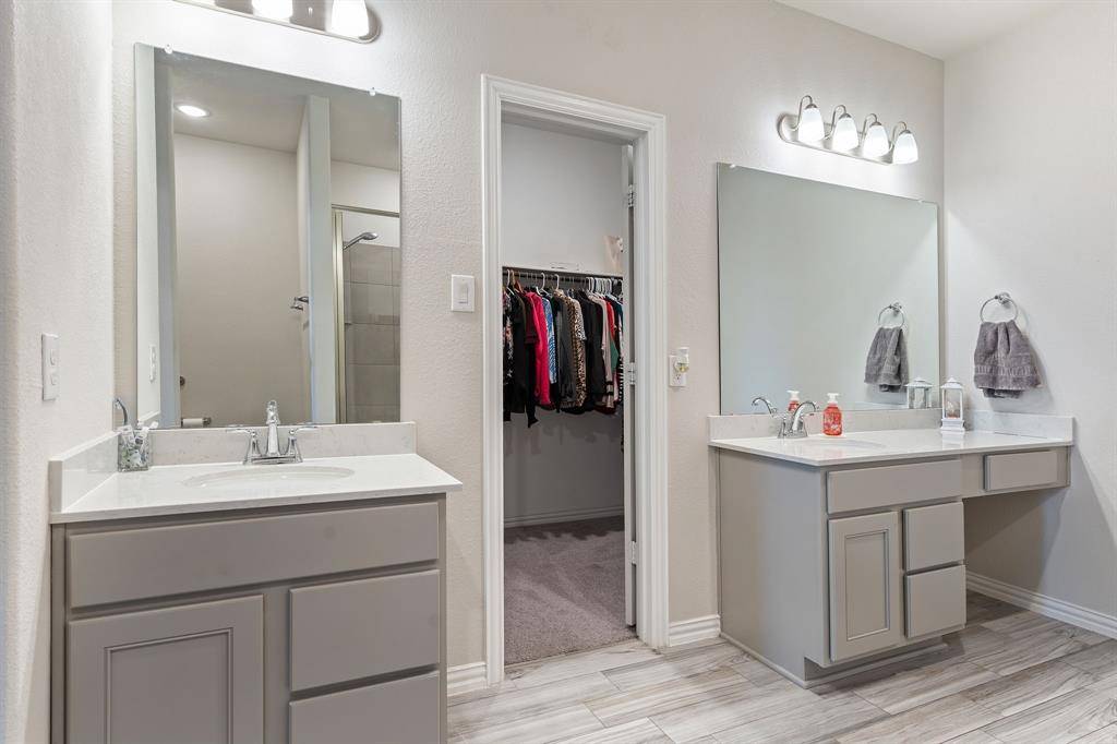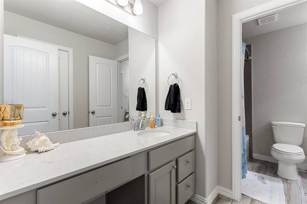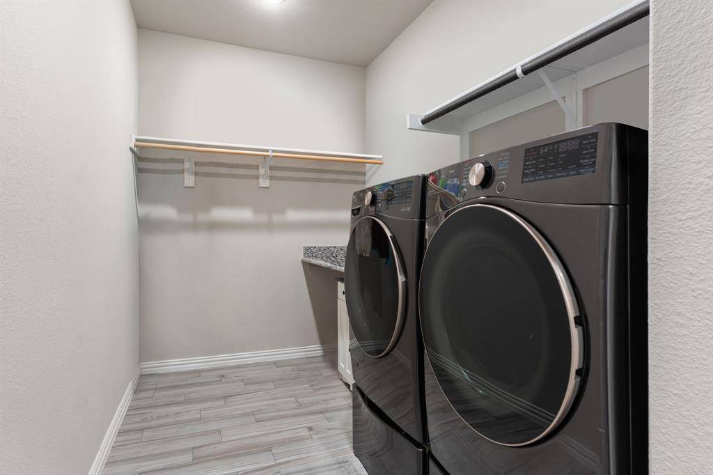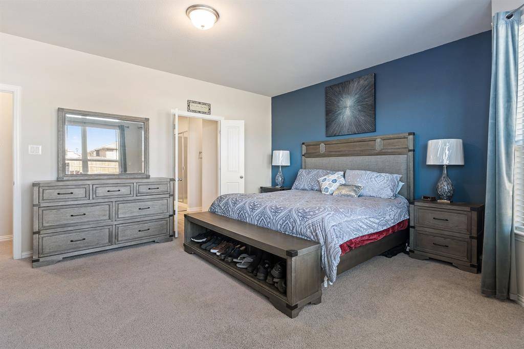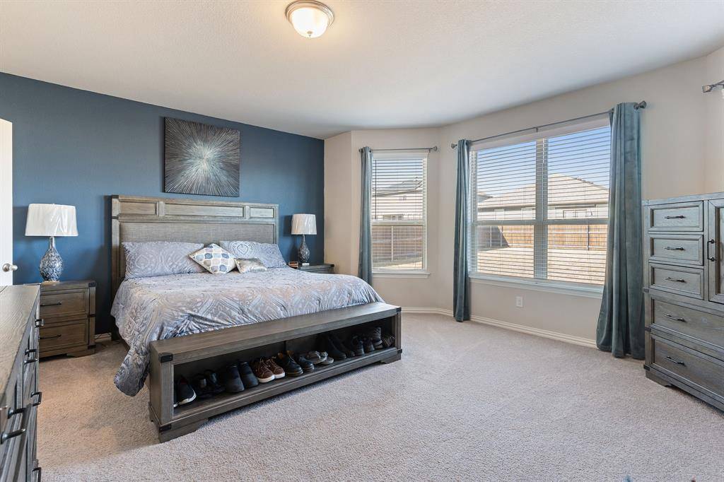 Built in 2021, this upgraded 5-bedroom home in Northwest ISD offers space, smart design, and standout features. The kitchen shines with tall cabinets, under-cabinet lighting, a huge pantry, and a built-in coffee bar. The primary suite is on the main level, with generously sized secondary bedrooms, a massive 20x37 upstairs game room, and a large flex space ideal for an office or dining. Enjoy a huge backyard ready for entertaining or a future pool, plus a 3-car garage, laundry room with built-in table, and access to community pool and parks. Move-in ready with upgrades throughout.