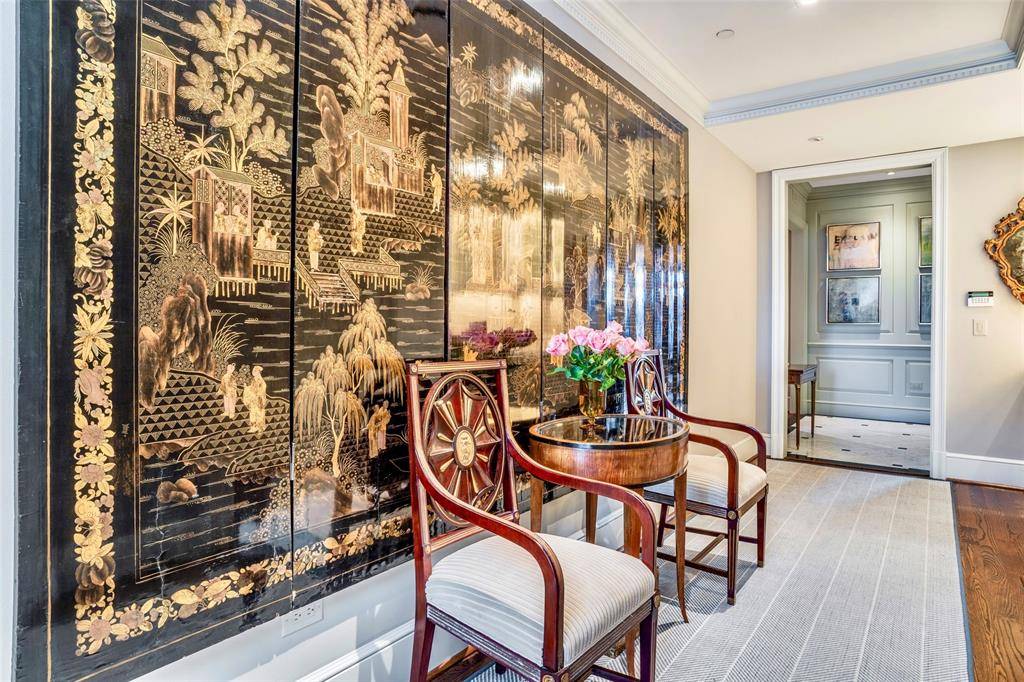The sun-filled breakfast room opens to a designer gourmet kitchen appointed with luxury appliances, a wine refrigerator, and access to its own private terrace. The spacious primary suite features dual marble baths and custom walk-in closets. French doors lead to a lovely study with an ensuite bath that can easily function as a third bedroom. A separate guest suite offers a private bath and a spacious walk-in closet.