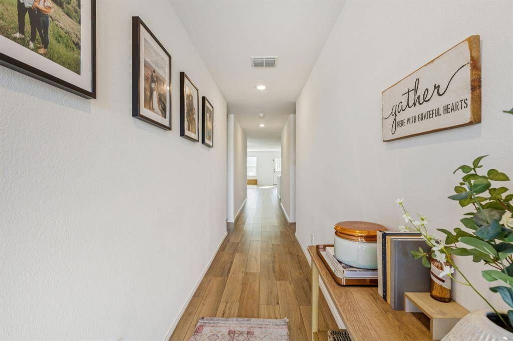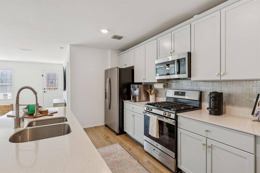 Location, layout, and lifestyle—this home has it all! Built in 2021 and immaculately kept, this beautifully updated home is ideally situated within walking distance to the park, playground, and elementary school. It offers an open floor plan designed to maximize space and comfort. The inviting kitchen features painted cabinets, stylish gold hardware, backsplash, and a breakfast island that flows seamlessly into the living and dining areas—perfect for entertaining and everyday living without feeling isolated. The private primary suite is thoughtfully separated from the secondary bedrooms and boasts a large walk-in closet and a generous ensuite bath. A second bedroom is also split from the others, making it ideal for a mother-in-law suite or guest retreat. Luxury plank flooring runs throughout the entire home—no carpet!—and the large windows fill the space with natural light. Step outside to a fenced backyard with an oversized patio, perfect for hosting gatherings and giving kids plenty of room to play. Located in Denton County for favorable taxes and within highly sought-after Northwest ISD, this home is in the heart of Sendera Ranch, a community packed with amenities including 3 pools, 2 soccer fields, 5 parks, 2 baseball fields, a roller hockey rink, walking trails, a half-court basketball court, and scenic ponds. Enjoy quick access to everything you need—Alliance Town Center just 18 minutes away, Downtown Fort Worth 25 minutes, DFW Airport 30 minutes, and a new Kroger coming less than 2 miles away. Don't miss this opportunity to live where convenience meets community!
