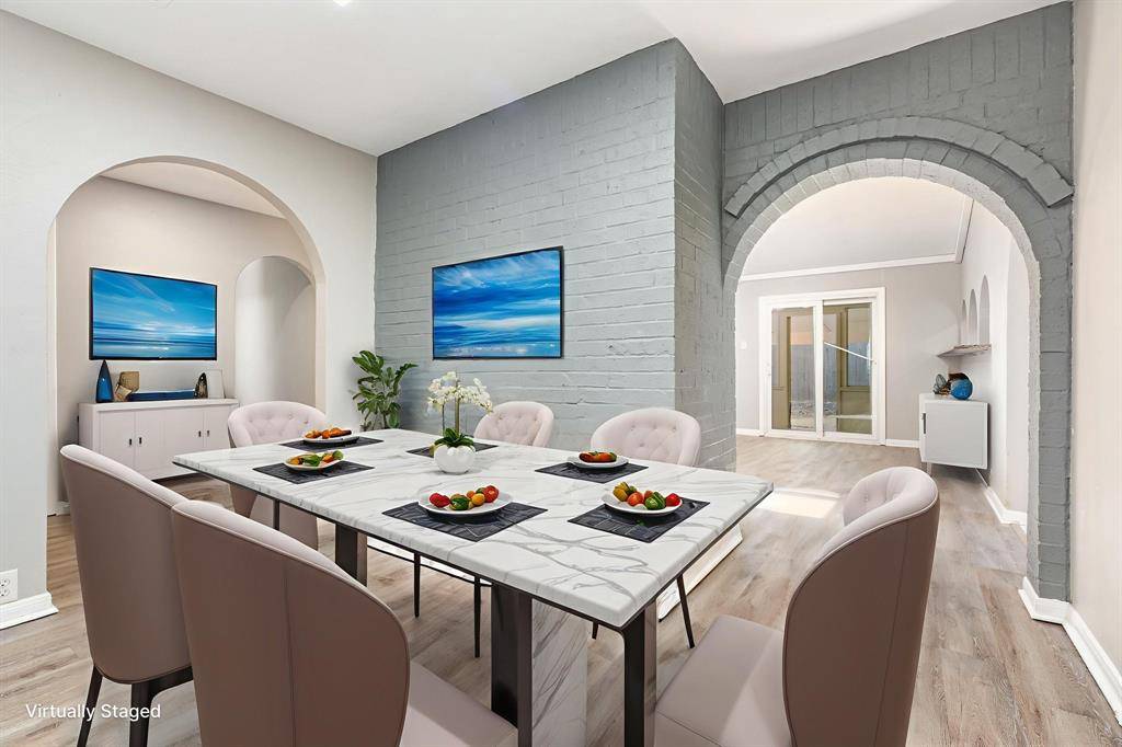 Welcome to 421 Cavender Ct, tucked away on a peaceful cul-de-sac in the heart of North Hurst. This three-bedroom, two-bathroom home features a living room that with vaulted ceiling punctuated by multiple skylights. Double sided brick veneer fireplace anchors the living room and the separate dining room. Dining room offers flexible functionality that may be converted into a home office or study area to accommodate your lifestyle needs.