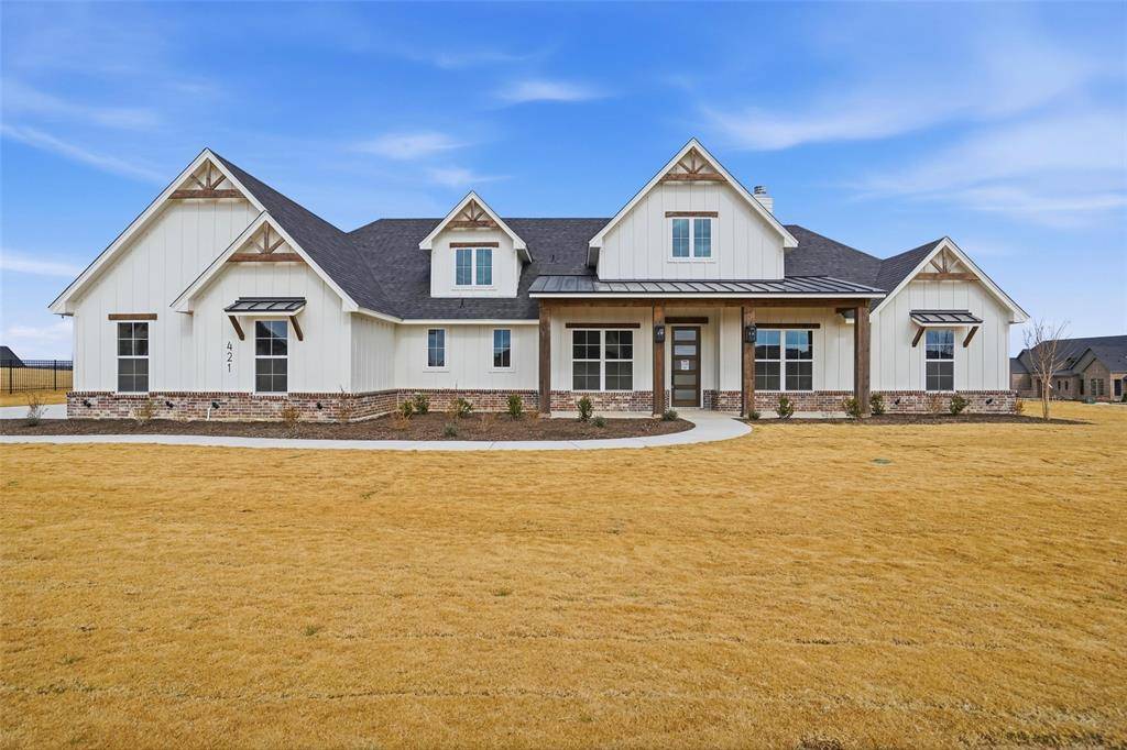 Awesome new plan by Builder in this exclusive new neighborhood in Aledo ISD! Brick and Stone home with black roof, many builder upgrades including Quartz Countertops, Luxury Vinyl flooring throughout all main areas. This home boasts 4 bedrooms, 2 and a half baths with a huge Covered Patio for entertaining. Plenty of extra room on this 1 acre lot, new construction, Estimated Completion date September 2025, CALL TODAY.