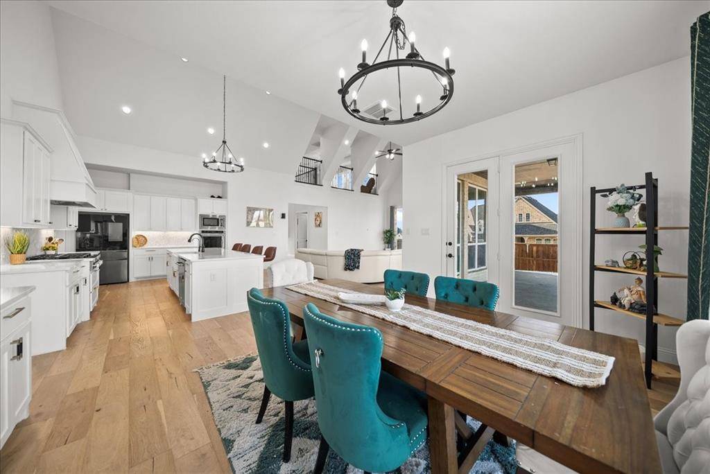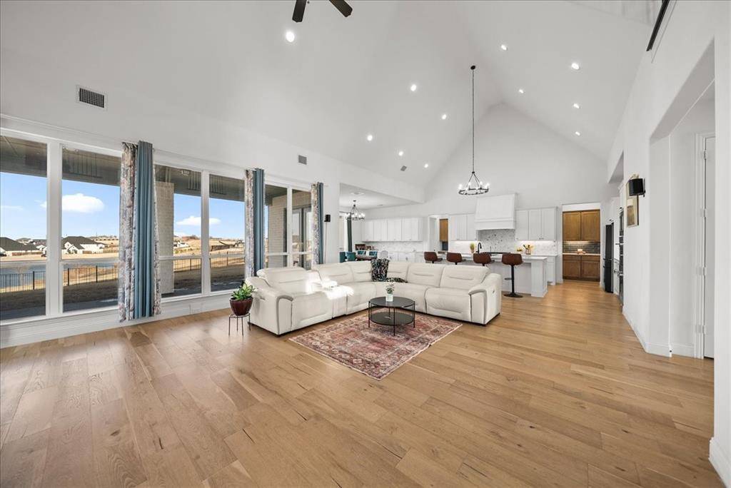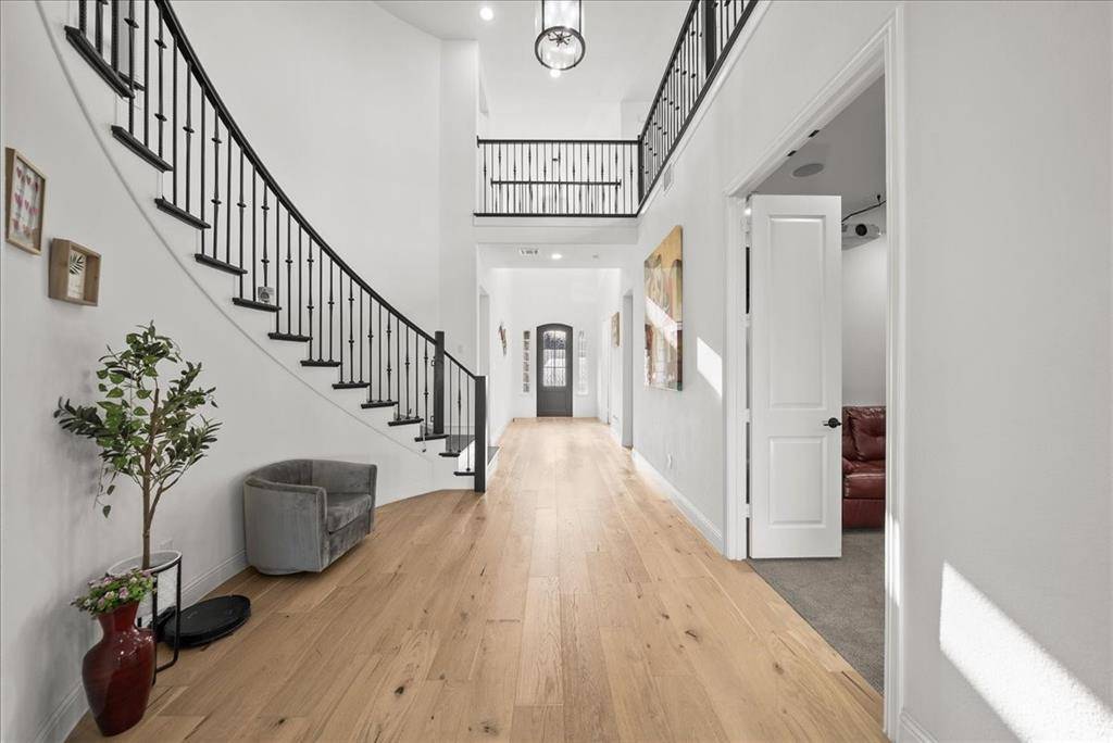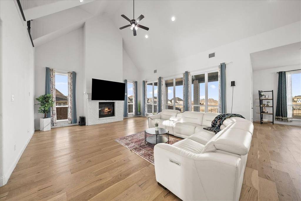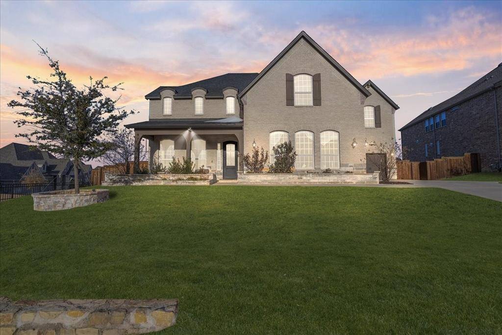 Exquisite 4,875-square-foot home showcasing transitional luxury. This 2022 American Legend residence at 2037 Waterleaf is gracefully positioned on a premium corner lot overlooking a tranquil pond, set on .41 acres. Upon entry, the home is filled with natural light, highlighted by beautiful white oak flooring throughout the main level; immediately establishing a sense of timeless sophistication. Offering 5 bedrooms, 5.5 baths, and a 3-car garage, this exceptional home is thoughtfully designed to blend refined elegance with effortless livability. Soaring vaulted ceilings and a dramatic cascade of windows create a bright and airy ambiance across the expansive open floor plan. The chef's kitchen servesas the heart of the home; seamlessly connecting the living and dining areas. Designed for both everyday living and entertaining, it features KitchenAid appliances, an adjacent dining space, a butler's pantry, designer lighting, and luxurious finishes throughout. The primary suite serves as a private retreat, complete with a spa-inspired bath featuring a separate soaking tub, oversized walk-in shower, and expansive his and her closets. Each secondary bedroom offers a private bath, enhancing comfort and functionality. Flexible living spaces abound; including a media room, game room, and additional bonus living area. Meticulously curated details extend from the oversized utility room to the high-end finishes throughout. With serene pond views, abundant natural light, and impeccable craftsmanship, this residence embodies elevated living in one of Haslet's most desirable settings. Welcome home!