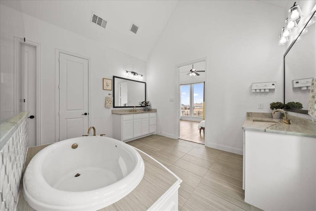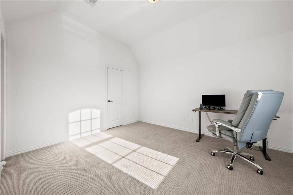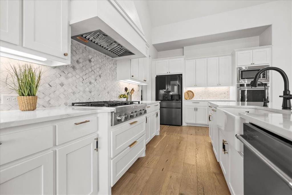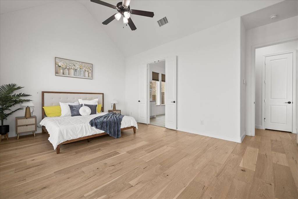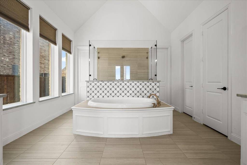 Exquisite 4,875-square-foot home showcasing transitional luxury. This 2022 American Legend residence at 2037 Waterleaf is gracefully positioned on a premium corner lot overlooking a tranquil pond, set on .41 acres. Upon entry, the home is filled with natural light, highlighted by beautiful white oak flooring throughout the main level; immediately establishing a sense of timeless sophistication. Offering 5 bedrooms, 5.5 baths, and a 3-car garage, this exceptional home is thoughtfully designed to blend refined elegance with effortless livability. Soaring vaulted ceilings and a dramatic cascade of windows create a bright and airy ambiance across the expansive open floor plan. The chef's kitchen servesas the heart of the home; seamlessly connecting the living and dining areas. Designed for both everyday living and entertaining, it features KitchenAid appliances, an adjacent dining space, a butler's pantry, designer lighting, and luxurious finishes throughout. The primary suite serves as a private retreat, complete with a spa-inspired bath featuring a separate soaking tub, oversized walk-in shower, and expansive his and her closets. Each secondary bedroom offers a private bath, enhancing comfort and functionality. Flexible living spaces abound; including a media room, game room, and additional bonus living area. Meticulously curated details extend from the oversized utility room to the high-end finishes throughout. With serene pond views, abundant natural light, and impeccable craftsmanship, this residence embodies elevated living in one of Haslet's most desirable settings. Welcome home!