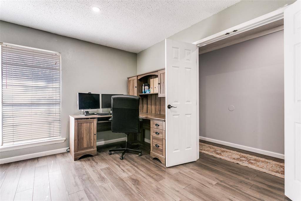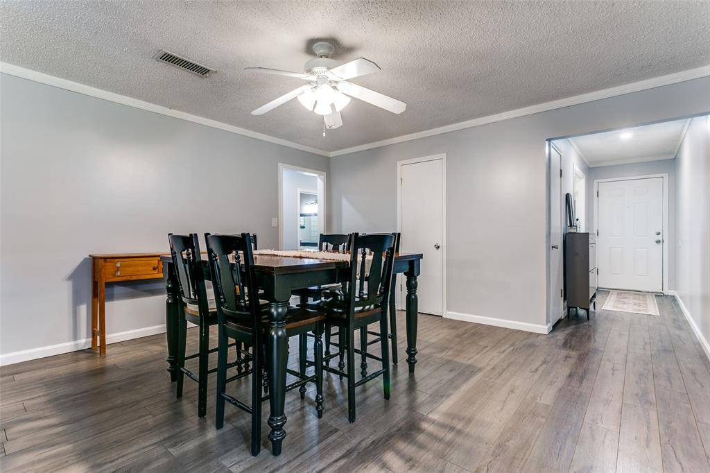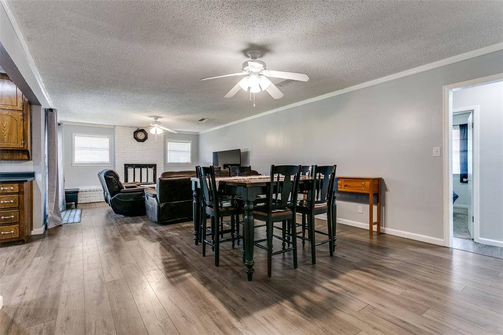 Charming one-story home in the heart of Euless, featuring an open floor plan centered around a grand fireplace. Recent high-end updates include sleek laminate flooring throughout the living areas, kitchen, and office, plus a modernized master bath with contemporary finishes. Enjoy a spacious backyard with a covered patio—perfect for relaxing or entertaining. Located in the highly regarded Hurst-Euless-Bedford ISD, one of the area's top school districts.
