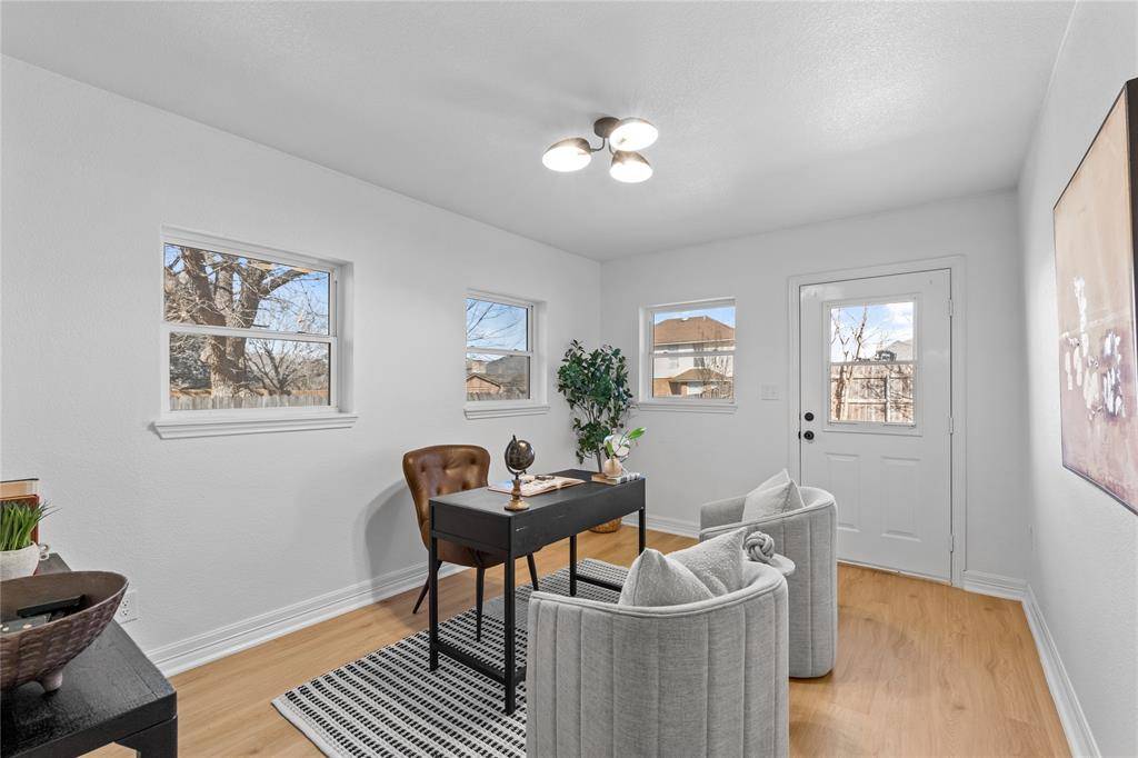 BACK ON MARKET! Buyer financing fell through. This stunning, fully remodeled home blends modern design with warm, inviting spaces that instantly feel like home! Features all-new flooring, interior & exterior paint, designer lighting, quartz countertops, modern tile & bath fixtures, and new appliances—no detail overlooked! The spacious layout features vaulted ceilings and a flex space perfect for an office or playroom. Designed for entertaining, the open-concept floor plan seamlessly connects the formal dining, kitchen nook, and bar seating! The oversized primary retreat offers a spa-inspired bathroom complete with dual vanities, a freestanding soaking tub, and a walk-in shower. Enjoy a peaceful backyard with mature landscaping and a brand-new patio! Just around the corner from Richfield Park, zoned to top-rated Birdville ISD schools, and featuring an extended driveway for extra parking or trailers—this home truly has it all. Homes this updated and move-in ready don't come along often—schedule your showing quickly!