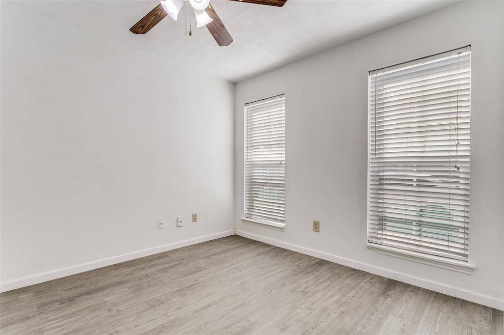Nestled on a quiet cul-de-sac in the sought-after Timberline Estates, 2121 Stone Moss Lane offers the perfect blend of tranquility and modern convenience. This meticulously updated 1.5-story half duplex, bungalow is a rare find, boasting a dual primary layout that caters perfectly to empty-nesters, first-time buyers, or savvy investors. Step inside to an expansive, sun-drenched great room featuring soaring cathedral ceilings and a classic brick wood-burning fireplace. The heart of the home has been completely transformed with designer touches, including sleek quartz countertops in the kitchen, freshly painted cabinetry, and a suite of brand-new stainless-steel appliances—featuring a double oven for the home chef. Rustic wood-look luxury vinyl plank flooring flows seamlessly through the main living areas, offering both durability and timeless style. With a private primary suite on the main level and a second master retreat upstairs, the floor plan offers unmatched flexibility. Located just steps from the highly rated Grapevine High School. This is more than a home; it's a lifestyle opportunity in a premier North Texas location!