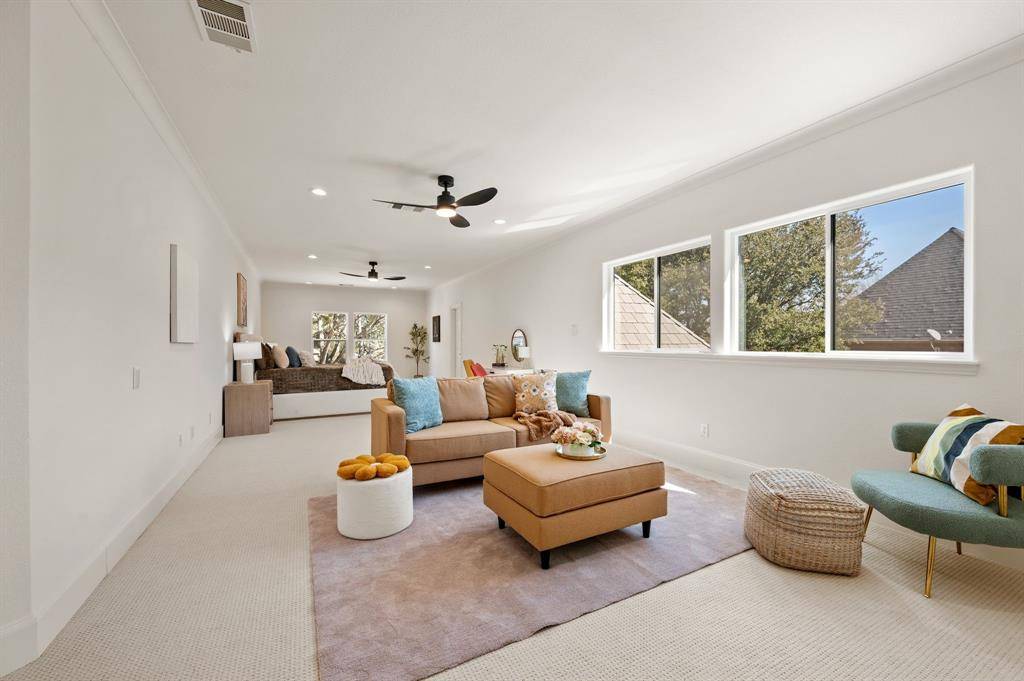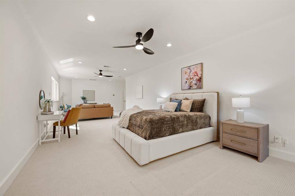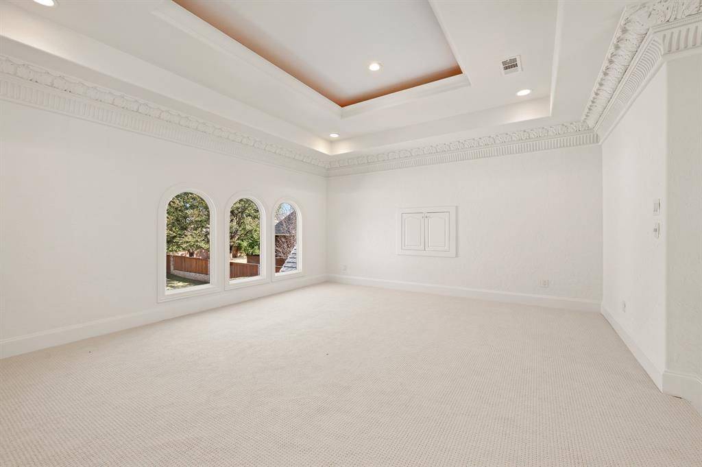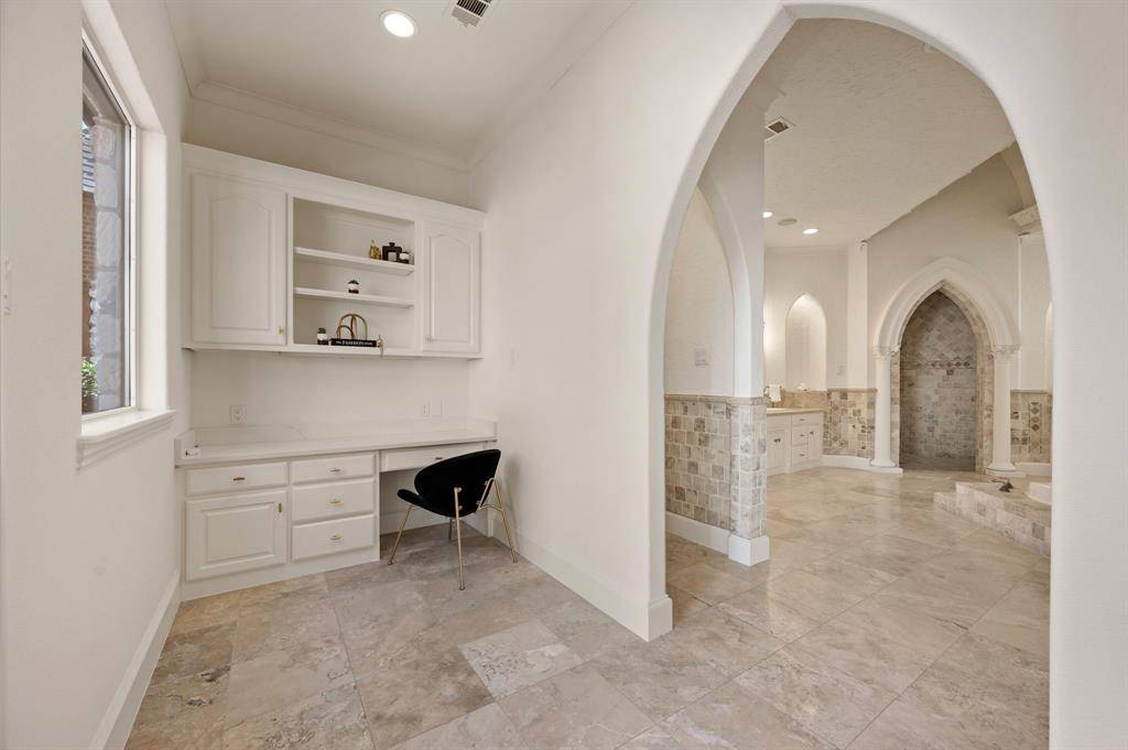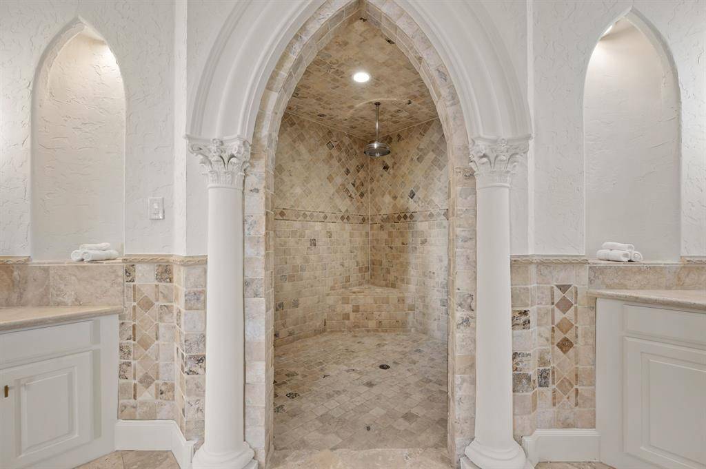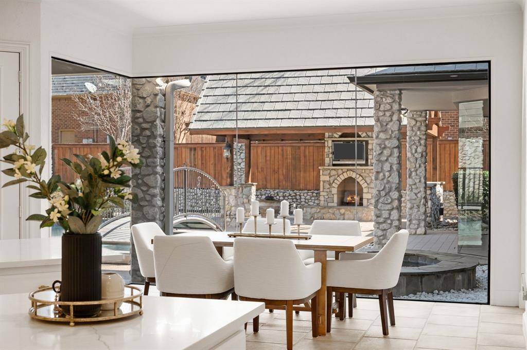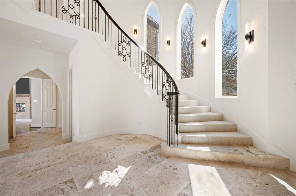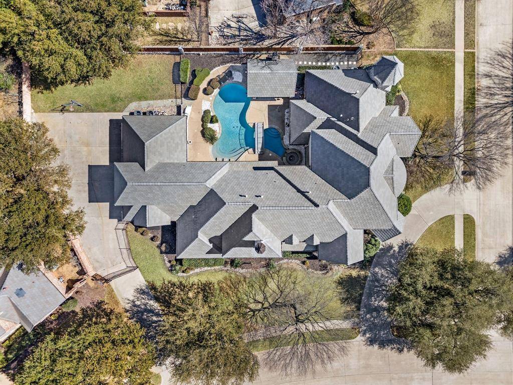 Welcome to this stunning, MOVE-IN READY luxury estate with 4 car garage situated on an exclusive half-acre corner lot in the prestigious 24-hour guard-gated community of Montclair Parc. Ideally located just minutes from Southlake Town Square, Downtown Historic Grapevine and DFW Airport this incredible home has it all! From the moment you enter the grand wrought-iron staircase, soaring vaulted ceilings and expansive windows create a breathtaking first impression, filling the home with natural light. Designed for elevated living and effortless entertaining, the first floor offers multiple living and dining spaces, an impressive media room, a walk-in wine room, dual butler's pantries and a spacious laundry room complete with built-ins and a pet shower. The chef's kitchen is a true showpiece, featuring gorgeous quartz countertops, a built-in refrigerator, chef-style gas cooktop and an oversized island. The private primary suite is thoughtfully located on the main level and showcases a wall of windows overlooking the sparkling pool, a cozy double-sided fireplace, and an expansive custom walk-in closet with built-in shelving and vanity. The spa-inspired primary bath includes a soaking tub, built-in desk and a luxurious oversized shower with multiple shower heads for a true retreat experience. Upstairs you will enjoy a spacious game room with wet bar, a dedicated office with custom built-ins, and a generously sized secondary primary suite, ideal for multigenerational living or extended guests. Step outside to your own private resort. The covered patio overlooks a spectacular pool with a swim-up bar, while a charming bridge leads to a covered entertaining space with a fireplace. A built-in grill completes the outdoor living experience, creating the perfect setting for unforgettable gatherings year-round. You don't want to miss your chance for luxury and resort-style living, all in one remarkable property.