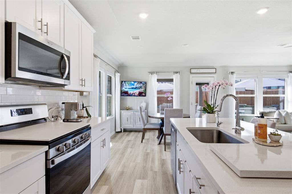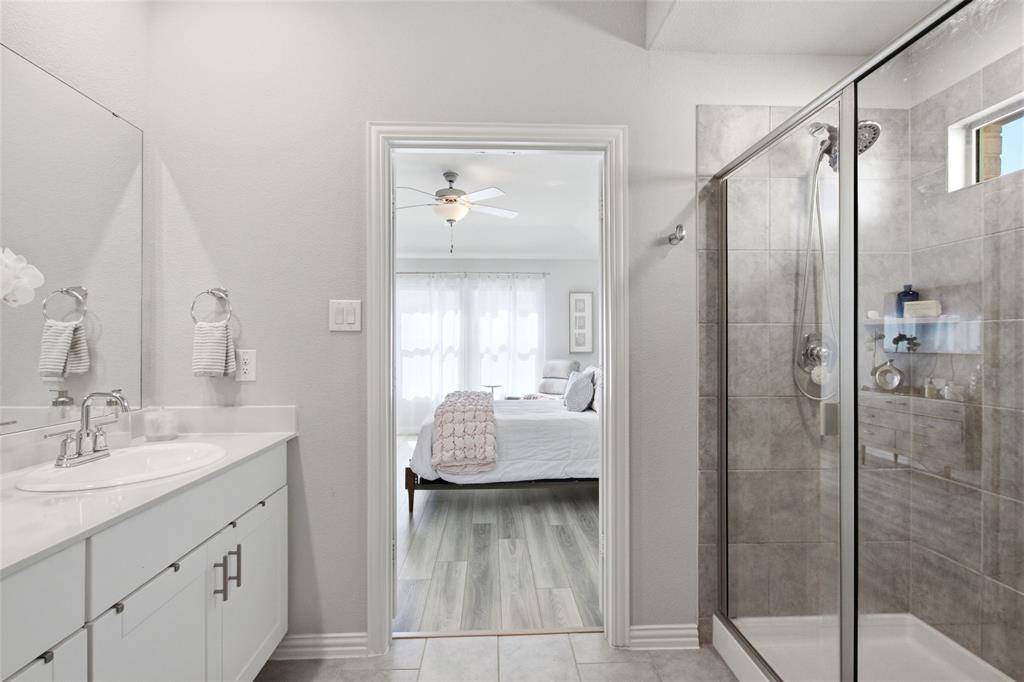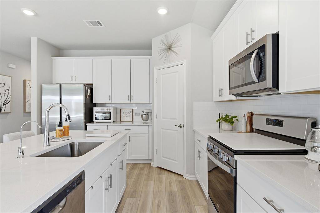 If you are looking for a meticulously maintained and move in ready home in the Haslet area, this one is it! Built in 2022, this 4 bed, 3 full bath home is ready for its new owners. This property has great curb appeal with its moody stone and brick exterior and the interior is full of features and upgrades. Warm wood luxury vinyl plank flooring flows throughout the home and there are many windows creating a clean, bright and fresh interior. The kitchen is gorgeous with quartz countertops, white cabinetry, an island, stainless steel appliances and a pantry. If buyer is interested, the seller is open to selling the water softener. Enjoy the open floorplan which combines both the comfortable dining area and functional living room. The Primary bedroom is a retreat with an ensuite bathroom that has dual sinks, a walk in shower and large walk in closet. The 2nd bedroom or in law suite has it's own private bathroom that has been upgraded to a walk in shower with sleek and modern grab bars. Not to be missed is a flex space that is currently being used as a tv room or can be utilized as a dedicated office space or formal dining room. The utility room is worth mentioning because it has extra space for a second refrigerator or a small freezer and a built in countertop with drawers that's perfect for folding clothes. The fully fenced backyard is private and the sellers extended the concrete patio which allows both covered and uncovered outdoor living. The Northstar community has a pool and playground for outdoor activities and shopping conveniences such as Walmart and Lowes are less than a 10 minute drive away. A new Kroger grocery store is also being built next to the new 711 and is a 4 minute drive from this home! Come see this property in person and appreciate just how immaculate it has been maintained!