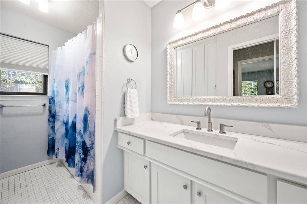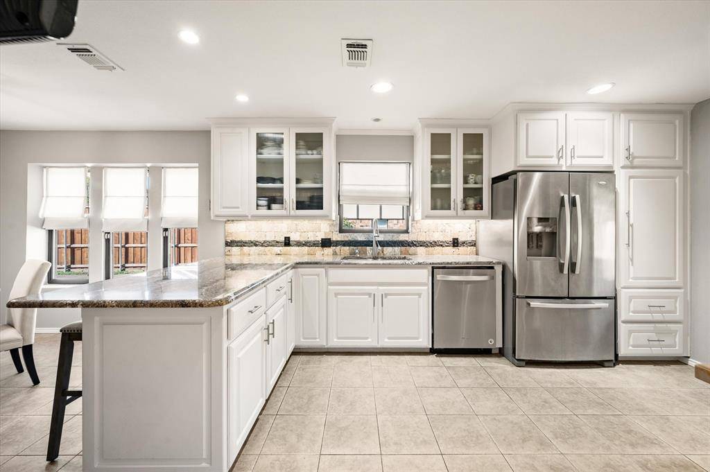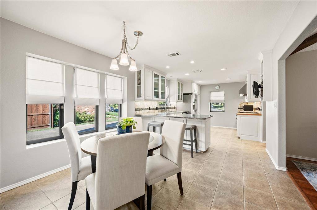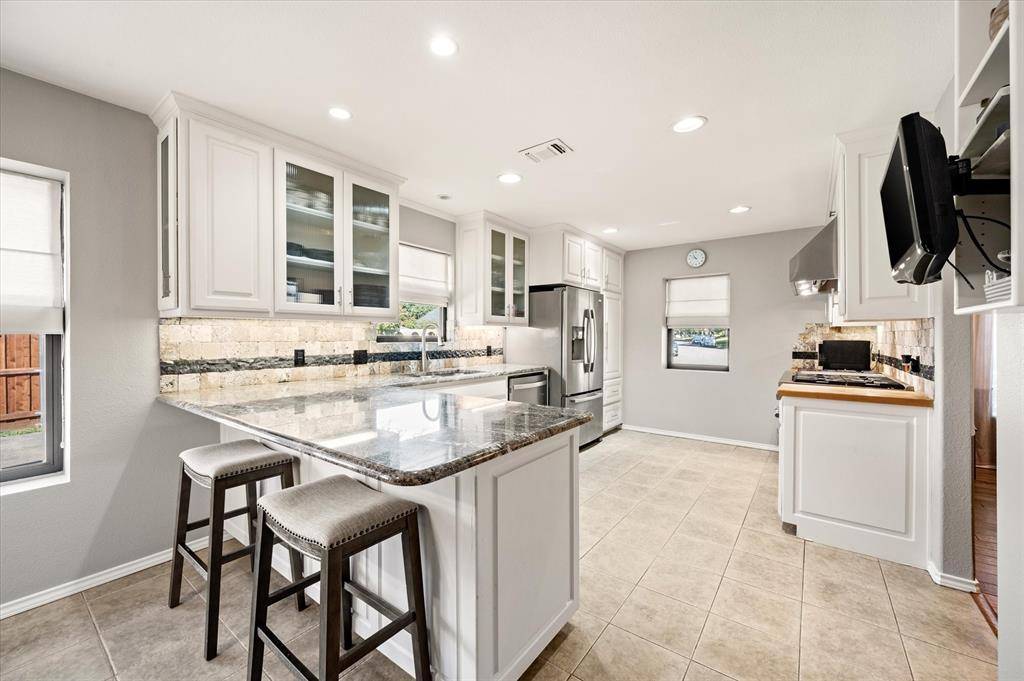 Discover your dream home at 129 E Louella! This beautifully updated SINGLE-STORY GEM stands out as a cozy retreat, featuring a warm living room accented with a charming stone fireplace, perfect for creating inviting memories during chilly evenings. The exceptional and flexible layout includes a versatile space that can serve as a 4th bedroom, mother-in-law suite, or spacious game room, complete with an ensuite bath and a private entrance to the backyard for accommodating guests or family members. Culinary enthusiasts will love the heart of the home—a kitchen boasting an industrial VIKING range with an indoor grill and commercial vent, ideal for entertaining friends and preparing gourmet meals. Step outside to your private backyard oasis, which features a pristine diving pool with a waterfall, perfect for hosting gatherings, family reunions, or summer barbecues. The property is well-secured and private with an 8-foot privacy fence and an electric gated driveway that wraps around to the backyard, offering both convenience and peace of mind. Additionally, a convenient shed provides extra storage for outdoor equipment, tools, or seasonal decorations. Inside, enjoy modern upgrades like newer windows, spacious walk-in closets with Elfa shelving, radiant barrier insulation, and stunning granite and quartz countertops throughout the home. Centrally located, this residence offers easy access to highways, shopping, DFW Airport, and Mayfair Park, with L.D. Bell High School just a short walk away. To top it all off, this property includes a versatile workshop, off the garage, equipped with electricity, heating, and cooling—ideal for DIY enthusiasts or extra storage. Don't miss your chance to own this enchanting and adaptable home at 129 E Louella—experience the lifestyle you've always dreamed of!