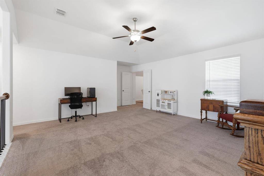 Beautifully maintained, like-new 2-story home in the Caraway community in Haslet and located in sought-after Northwest ISD. This 3,598 sq ft home offers 4 bedrooms, 3.5 bathrooms, a private home office, upstairs game room, and a dedicated media room with in-wall speakers and equipment. The open floorplan provides excellent space for entertaining and everyday living. Relax on the covered back patio and enjoy a quiet neighborhood setting. HOA amenities include front yard maintenance, community pool, walking trails, playground, and stocked fishing pond. Convenient location with quick access to major highways, shopping, dining, and nearby Fort Worth.