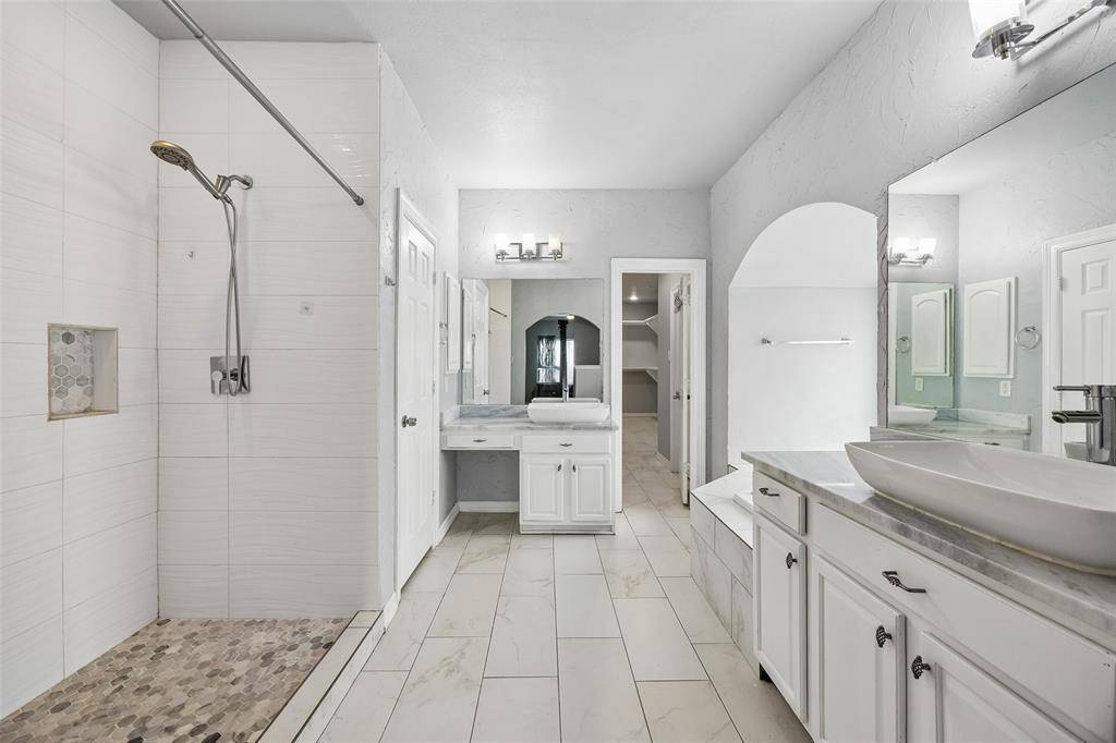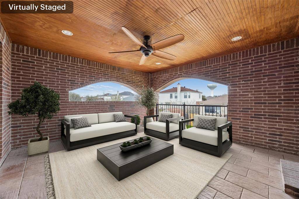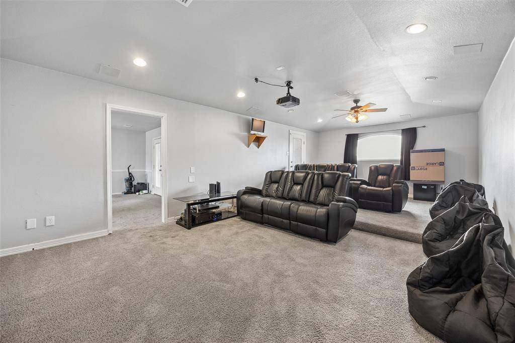 Located in highly sought after Mansfield ISD, this stunning home offers an exceptional layout designed for both everyday living and effortless entertaining. With the primary suite conveniently situated on the main floor and all secondary bedrooms upstairs, the floor plan provides privacy and functionality for the entire household. The heart of the home features a beautifully appointed kitchen and dining area, both finished with granite level countertops and complemented by two built in wine refrigerators, making it ideal for hosting gatherings or enjoying quiet evenings at home. Gas stove can be converted to electric. Multiple living spaces elevate the experience, including a spacious main level living room, an additional large living area upstairs, and a dedicated media room complete with balcony access for an added touch of luxury. The primary suite is truly impressive. Generously sized and thoughtfully designed, it includes a spa inspired en suite bath and a massive walk in closet that is Texas sized and ready to accommodate even the most extensive wardrobe collections. Step outside to an entertainer's dream. The covered outdoor living area offers full bath access directly from the porch, creating the perfect setup for hosting guests, future pool plans, or seamless indoor outdoor living. Ideally located with easy access to major highways and approximately 30 minutes from DFW Airport, this home combines convenience, elegance, and space in one remarkable package.