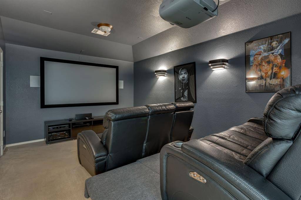 Located in the popular Watersbend community, this 4-bedroom, 2.5-bath home offers comfort, space, and modern efficiency. The thoughtful floor plan provides plenty of room for living, entertaining, and working from home. A major bonus is the fully paid-off solar panel system, helping keep energy costs low, along with a Tesla wall charger already installed for convenient at-home EV charging. Enjoy community amenities and a prime North Fort Worth location close to shopping, dining, and major highways. Have peace of mind during storms with an armored closet in the primary bedroom closet that can hold 6 people. Enjoy movie nights in your own state of the art theater room. This one won't last long, schedule your tour soon!