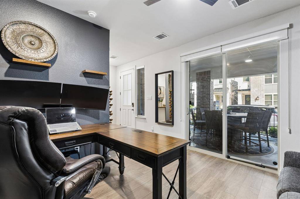 Located in the highly sought-after City Point community, this stunning 3-story urban-style residence blends modern design with elevated finishes throughout. Showcasing striking curb appeal with brick and siding, clean architectural lines, and a covered front patio with epoxy finish, this home offers both style and functionality from the moment you arrive. Inside, a versatile first-floor study with custom paint and accent walls provides the perfect space for a home office or flex room, while upgraded stairs, tinted windows, and designer touches enhance the home's overall appeal.
