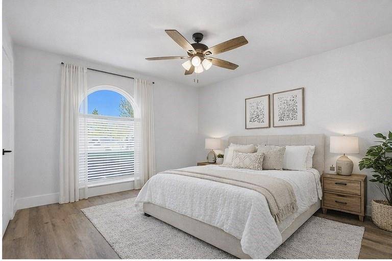 This home offers standout features rarely found in the surrounding area, including a custom fireplace, walk-in pantry, and a convenient interior utility room. The Owner's Suite showcases a custom architectural accent wall, adding a unique designer touch. Updates can be seen throughout, highlighted by high-quality luxury vinyl plank flooring, nice tall baseboards, updated door hardware, and new ceiling fans for added comfort.