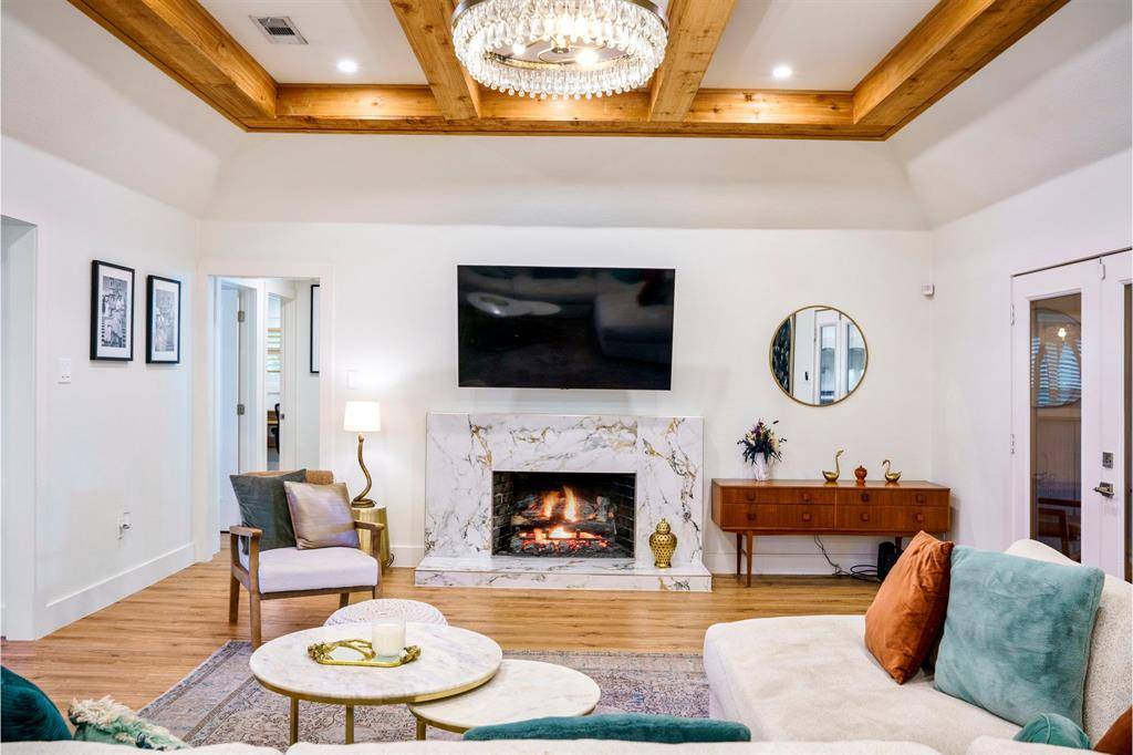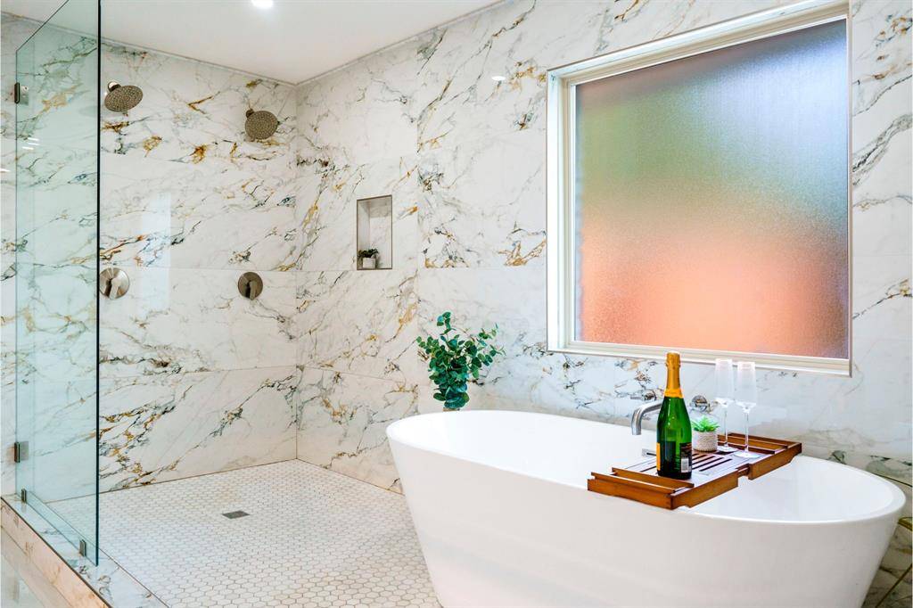 Striking design, a pool, and zoning to Brentfield Elementary School - this fully updated North Dallas home stands out in all the right ways. It's trendy, fun, and truly a vibe from the moment you arrive. Zoned to highly sought-after Richardson ISD, the home offers quick access to some of North Dallas' best restaurants, shopping, and major employment centers, making everyday life easy without sacrificing the schools and neighborhood setting people are looking for. Inside, the home immediately feels bright and open. The living room, anchored by beautiful ceiling beams and filled with natural light, flows into the updated kitchen with quartz countertops and SS appliances, then into the dining area beyond. The layout feels open, connected, and made for gathering. Straight ahead, French doors frame views of the pool and open to the patio, creating an easy connection between indoor living and the backyard .The primary suite offers a calm retreat, with a huge walk-in closet and a beautifully remodeled bathroom featuring a freestanding soaking tub and large walk-in shower. Two additional bedrooms sit near the primary suite, while a third bedroom is positioned on the opposite side of the home with its own full bath and direct access to the backyard-a private setup that works beautifully for guests, older kids, or even a second primary suite. Throughout the home, thoughtful design choices give the space personality, from the home office with its bold accent wall to playful wallpaper in the guest bath, classic wood shutters, and lighting that keeps every room feeling bright and inviting.
