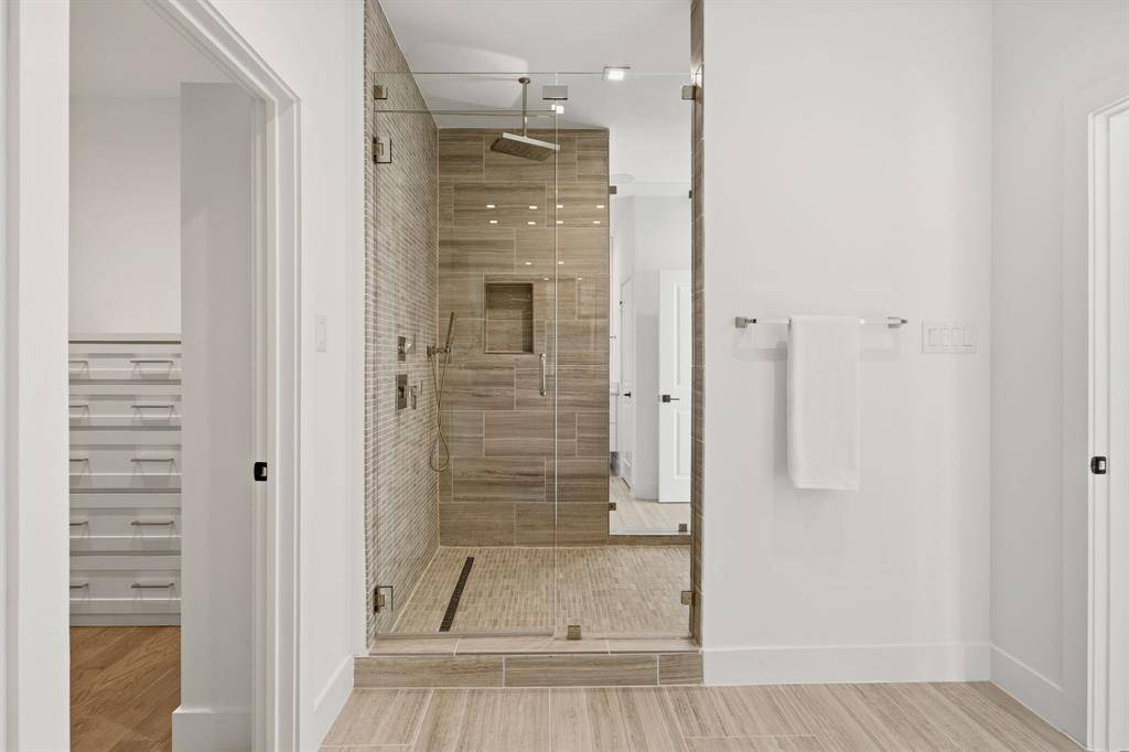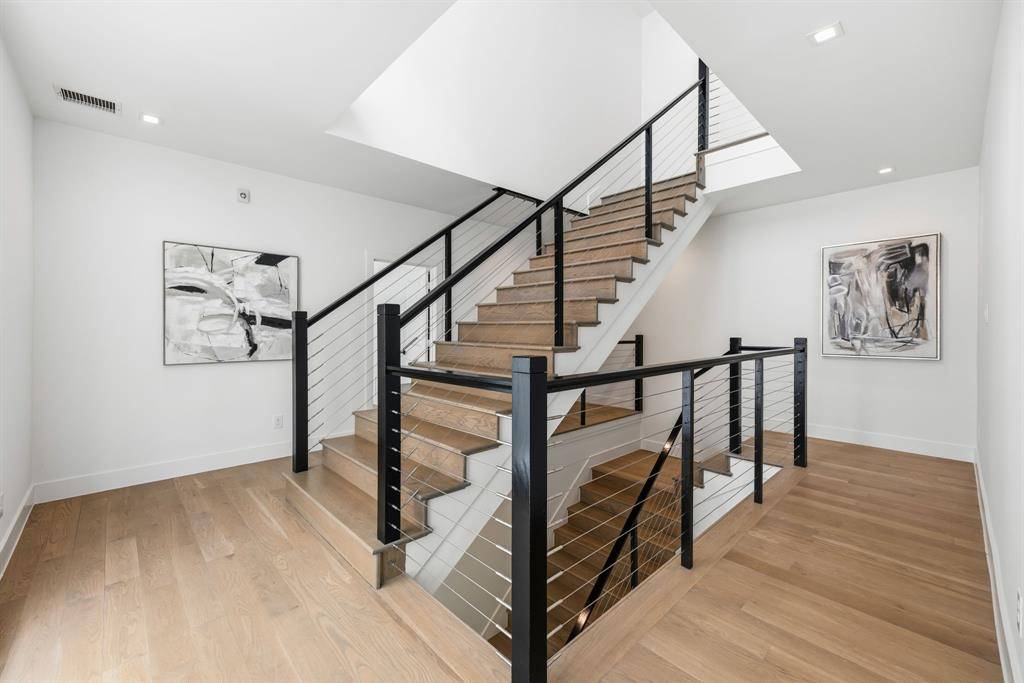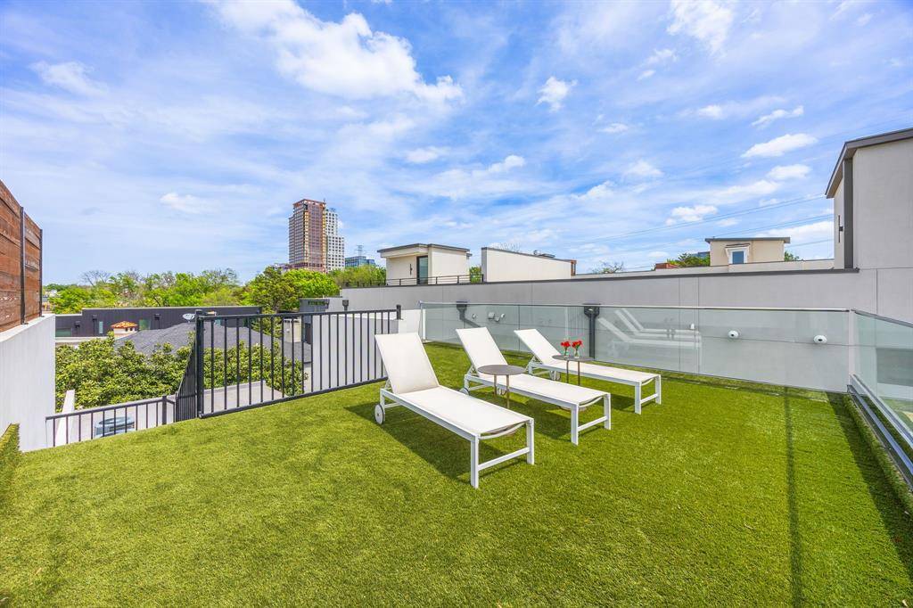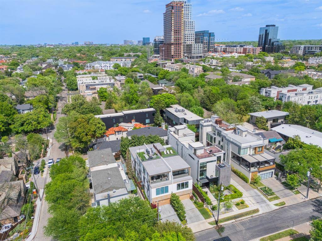 Designed for indoor-outdoor living, the home also features a covered patio, spa, fresh landscaping, and a balcony off the primary suite. A private rooftop deck crowns the home, where mornings begin with peaceful views of the Katy Trail and evenings end with breathtaking sunsets over the Dallas skyline—an elevated experience that truly sets this home apart.