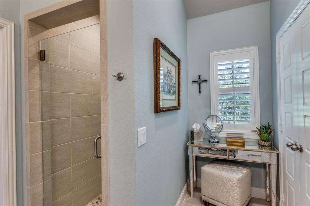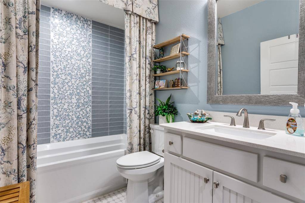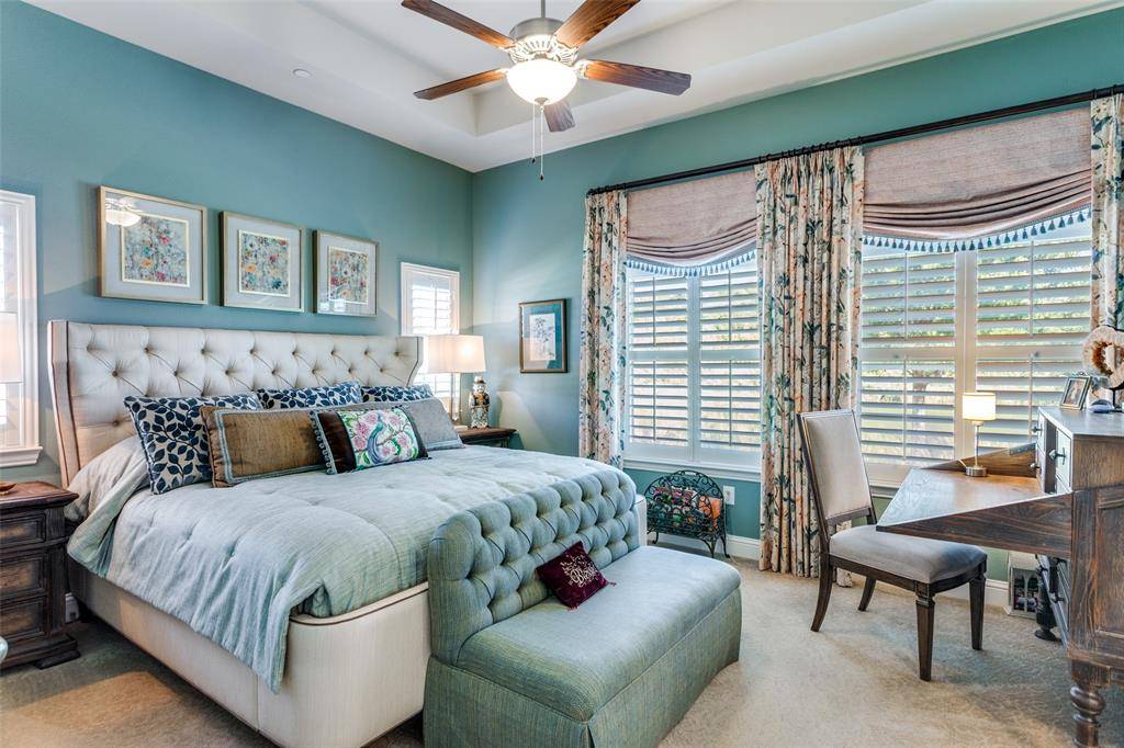 Creekside living in Viridian, with a peaceful view and a quiet setting. Thoughtful designer touches bring a calm, cohesive feel throughout this beautiful 2 bedroom, 2 bathroom townhome. Start your mornings waking up to the view of a tranquil greenbelt and waterway from the master bedroom. As you step into the living area, abundant natural light flows through plantation shutters to highlight tall ceilings, accentuated by custom headboards and exposed beams. As you make your way into the kitchen for your morning coffee or tea, you're greeted by custom pantry doors, updated lighting and custom backsplash featuring handmade Italian tile from Venice that elevate the space. Next, your led into the adjacent study, complete with a built-in desk and cabinetry, to catch up on your day before enjoying a peaceful morning on your extended, covered patio to enjoy the view. Your guests will appreciate a fully refreshed bathroom with an enlarged tub, new hardware and custom tile. Life here runs easy, with access to community pools including lap lanes, lake access with a sand beach and the Viridian sailing center, tennis and pickleball courts, miles of connected trails and parks with River Legacy access. With HOA covering exterior maintenance, irrigation, and landscaping, this home truly offers a life of leisure. Reach AT&T Stadium, Globe Life Field, Texas Live, Six Flags, and Texas Rangers Golf Club all within 10-15 minutes. This is the home that comes with the lifestyle you've been looking for!