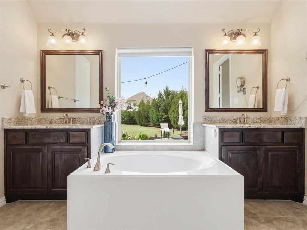 Beautiful 1.5-story home in Dominion at Bear Creek, offering a desirable floor plan on a spacious, pool-size lot, zoned for HEB ISD. This 3-bedroom, 2.5-bath home welcomes you with a grand entry hallway that flows into an open-concept living area with a gas fireplace, decorative lighting, and ceiling fans throughout. The kitchen is designed for both function and style, featuring granite countertops, a large island, farm sink, stainless steel appliances, double ovens, gorgeous wood cabinetry, and an eat-in dining area, along with a versatile formal dining space that can also serve as an office. The primary suite offers a relaxing retreat with a sitting area and a spa-like bath complete with separate vanities, a garden tub, walk-in shower with bench seating, and a spacious walk-in closet. Upstairs, a large game room provides flexible space for a second living area, office, or fitness setup. Additional highlights include a laundry room with built-in cabinets, drip-dry area, and room for a refrigerator. Smart features include a Ring doorbell, security system, thermostat, sprinkler system, WiFi-enabled garage door, plus a tankless water heater, and advanced HVAC enhancements add efficiency and peace of mind. Enjoy outdoor living with covered and uncovered patio space and a large backyard, all just a short walk to the community pool. This home is truly a gem! Ask your agent to send you the expansive features sheet and book your showing today!