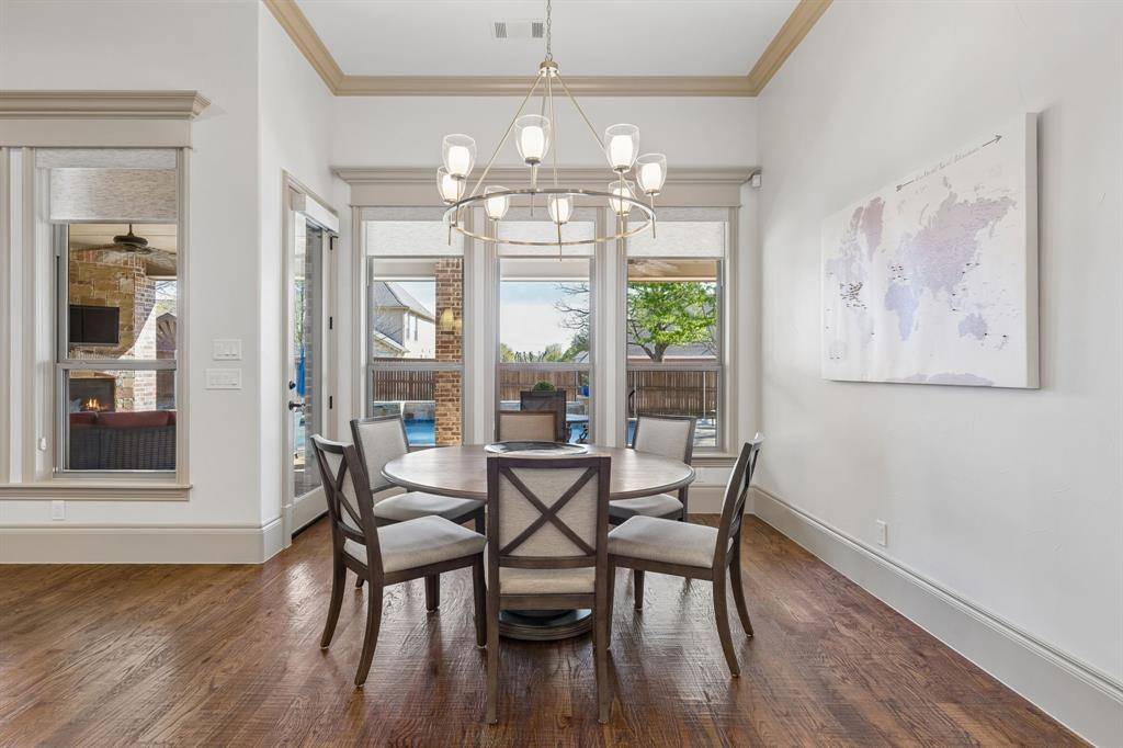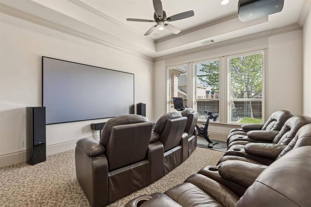 Stunning single story home in the sought after Camden Park addition of Southlake, situated on a spacious 0.381 acre lot. From the moment you arrive, you're welcomed by an impressive iron front door, soaring coffered ceilings, and elegant arched doorways that create a refined yet inviting atmosphere. Designed for effortless entertaining, this home offers exceptional spaces for hosting and gathering, including a butler's pantry, wine room, and a versatile fully equipped media room that can easily function as a game room. The chef's kitchen is a true showpiece, featuring quartzite countertops, commercial-grade appliances, built-in refrigerator, gas cooktop with pot filler, double ovens, and an expansive walk-in pantry.