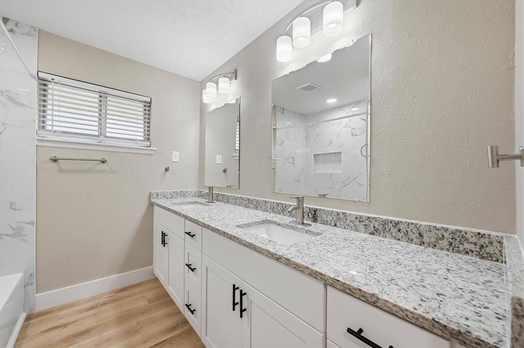 Welcome to 1200 Woodridge Circle, an extensively remodeled 4-bedroom, 2.5-bath 2 car garage home offering over 2,500 square feet of refined living space in the heart of Euless. This thoughtfully updated home blends timeless design with modern functionality. Upon entry, you are greeted by an inviting interior featuring fresh paint, updated flooring, and abundant natural light throughout. The spacious layout is ideal for both everyday living and entertaining. The main living area provides generous space for gathering and seamlessly connects to the beautifully renovated kitchen. Designed with both style and practicality in mind, the kitchen showcases updated cabinetry, sleek granite countertops, contemporary fixtures, and ample storage. The well-appointed primary suite offers a private retreat, complete with an updated ensuite bath featuring modern finishes and a comfortable layout. Three additional bedrooms provide flexibility for family, guests, or a dedicated home office. The secondary full bath has also been tastefully updated to reflect the home's cohesive design and a convenient half bath enhances the home's functionality for guests. The two-car garage provides additional storage and convenience. Outdoors, the backyard presents an excellent opportunity to create a personalized space for relaxation or entertaining. Ideally positioned with easy access to major thoroughfares, shopping, dining, and local amenities, this move-in-ready property delivers both comfort and convenience within an established neighborhood setting. A rare opportunity to acquire a fully remodeled home of this size and quality in Euless.