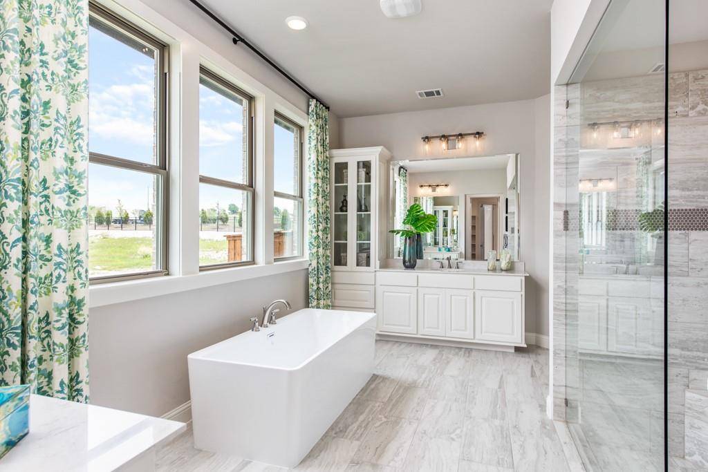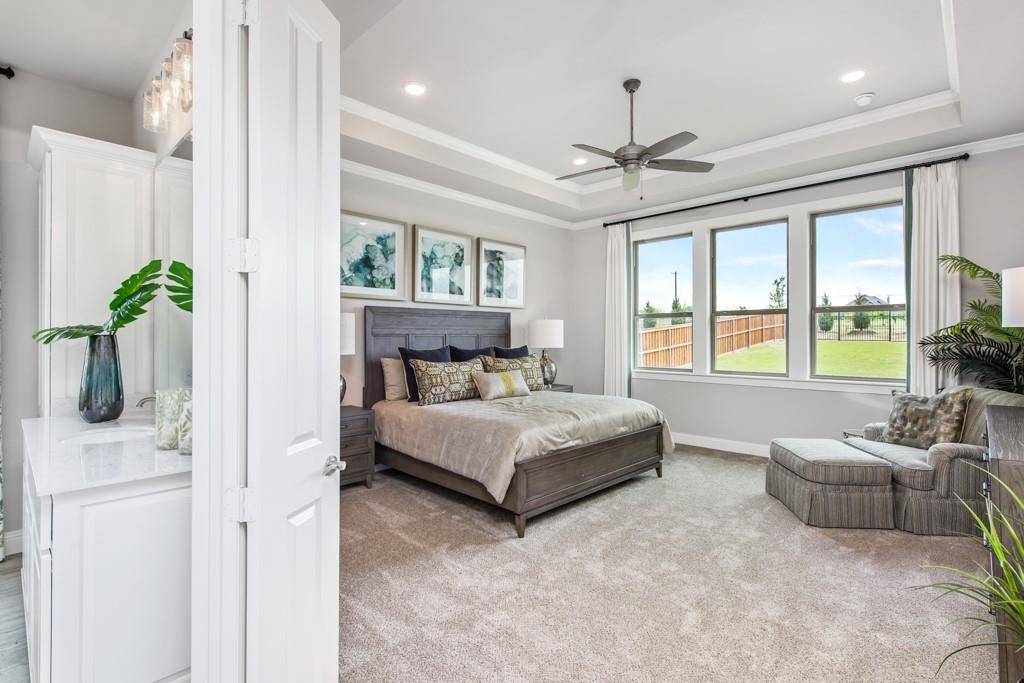 The private owner's suite occupies its own wing of the home, offering a true retreat. Enjoy a spa-inspired bathroom with a massive walk-in shower, deep soaking tub, dual vanities, and an oversized walk-in closet that conveniently connects directly to the laundry room.