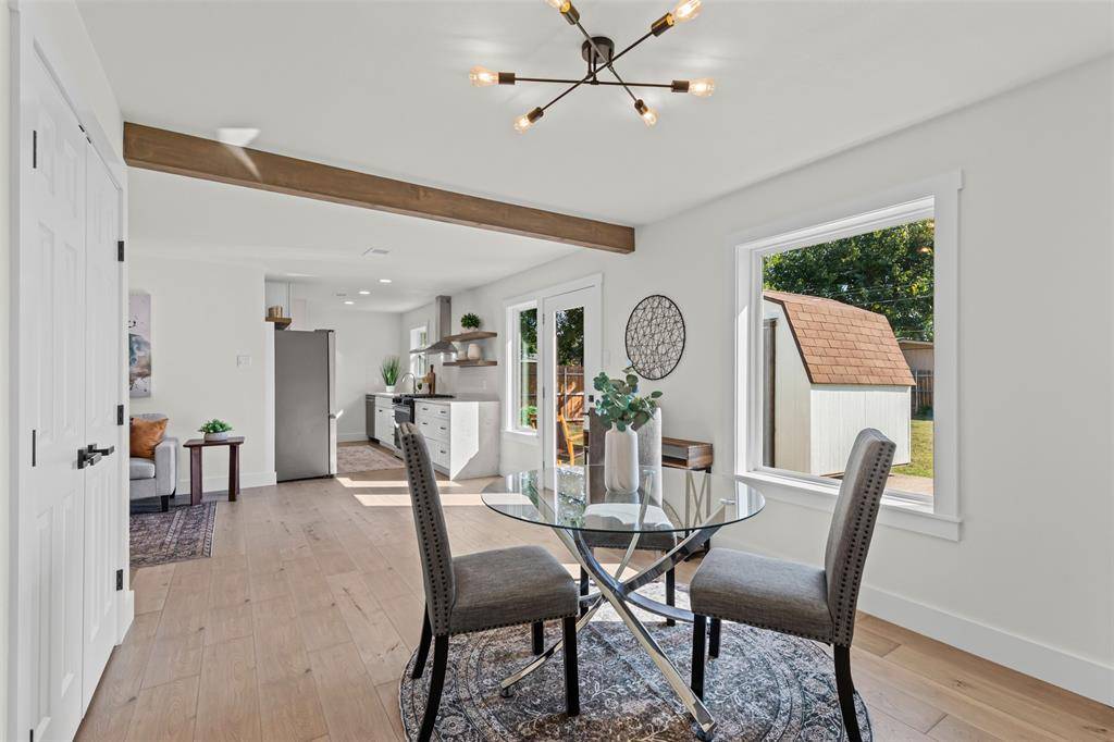This beautifully remodeled 3-bedroom, 2-bathroom home in North Richland Hills is the perfect blend of style, comfort, and convenience. Every detail has been thoughtfully upgraded to create a modern, move-in-ready space. The open-concept floor-plan boasts gorgeous luxury laminate flooring and custom trim work that adds warmth and character to the home. At the heart of the home, the chef-inspired kitchen features stunning quartz countertops, brand-new cabinetry, and a full suite of stainless steel appliances - ideal for preparing gourmet meals and entertaining guests. Both bathrooms have been completely remodeled with custom tile work, offering a luxurious, spa-like retreat. Other notable upgrades include a brand-new HVAC system, new lighting fixtures throughout, and designer paint inside-and-out. All brand-new, upgraded windows let in abundant natural light and help keep your utility bills low. The fully fenced backyard, with a brand-new fence, provides privacy and plenty of space for outdoor activities or relaxation. Whether you're enjoying a quiet evening or hosting friends and family, this outdoor space has you covered. Located in a prime area, this home is just minutes away from major freeways, making your commute a breeze. You'll also be close to shopping, dining, entertainment, and all the amenities North Richland Hills has to offer. With all these updates and an unbeatable location, this home is a rare find. Don't miss the chance to make it yours - schedule a showing today!