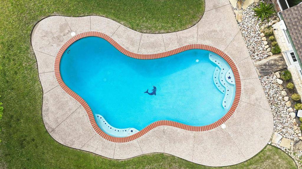 Step outside to a backyard designed for both relaxation and entertaining, complete with a pebble-finish pool featuring mosaic tile fish and dolphin details, along with beautifully landscaped grounds enhanced by ambient lighting. A detached oversized two-car garage and extended driveway provide ample parking and storage. The roof was replaced in 2025, adding even more peace of mind.