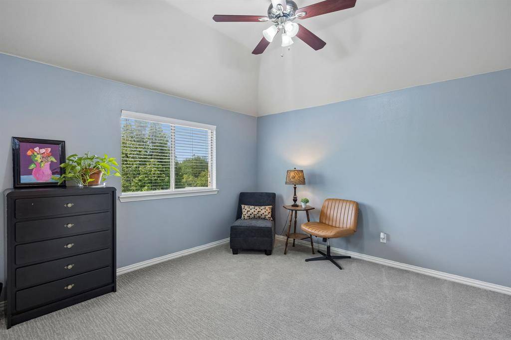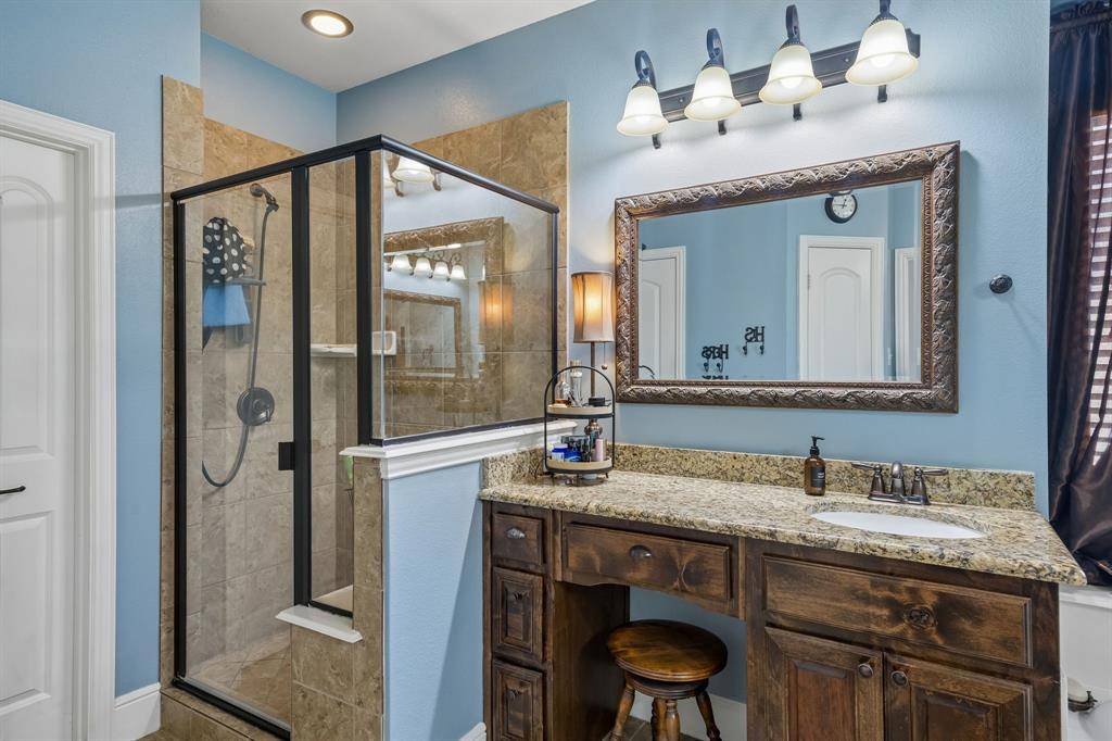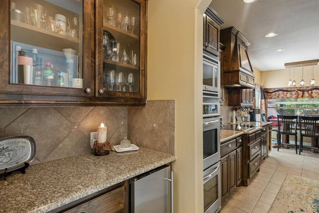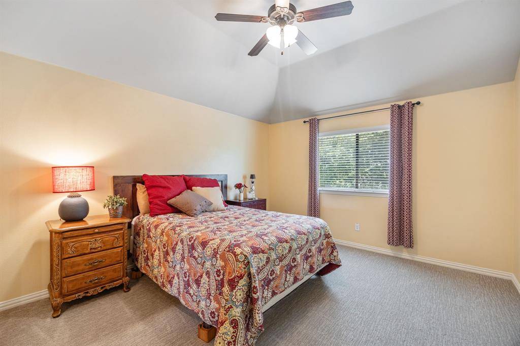 Welcome to 8104 Red River Run - an expansive Birdville ISD home boasting 5 bedrooms, 4 bathrooms, an office, 3-car garage, and an upstairs media room. Hand-scraped hardwood floors welcome you into the winding first floor past the office towards the dining room. The kitchen includes an oversized L-shaped eat-in island with custom tiling, as well as a double-oven, ice maker, walk-in pantry and breakfast area. The living room has massive cathedral ceilings and a stone-hearth fireplace. There are two bedrooms downstairs (including the primary), and three bedrooms upstairs (including an oversized custom bedroom with two closets). The upstairs has plenty of room for lounging either for reading in the gameroom loft, or for watching a movie in the media room. On a nice spring day you can sit outside on the large covered patio that's wired for lighting, electrical, bluetooth sound, and even has a screen to block sun and bugs. With a new roof in 2026 and new HVAC in 2024, this young home has been very thoughtfully maintained and updated.