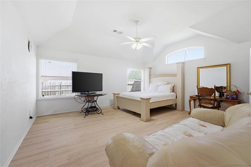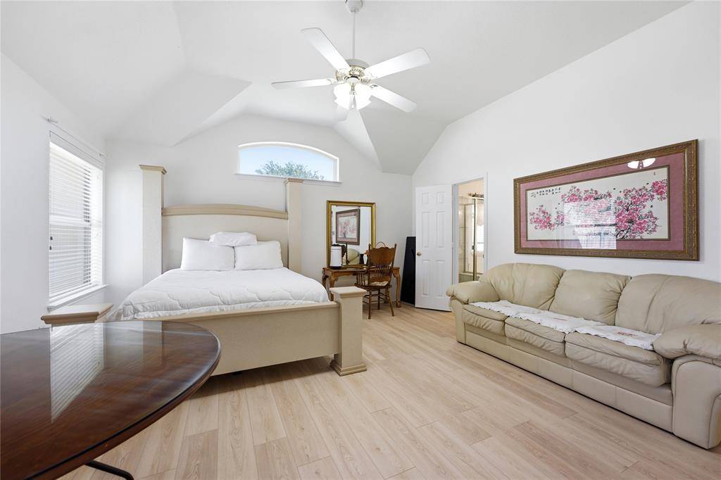 The oversized primary bedroom offers a private retreat with a Texas-sized en-suite bath. Bedrooms 2 and 3 are also generously sized, providing flexibility for family, guests, or a home office.