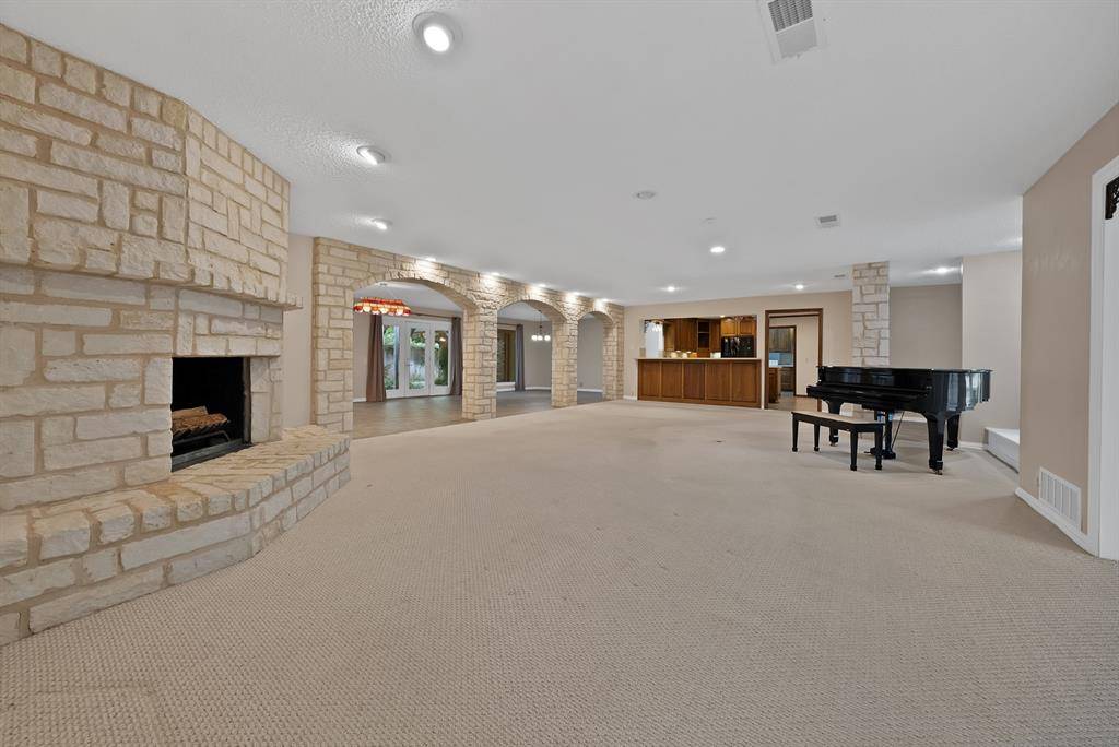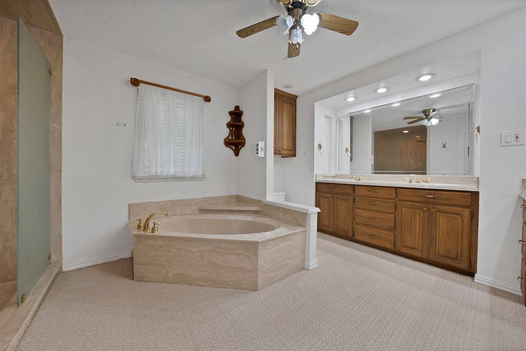 Beautiful, stately home in highly sought-after Interlochen Estates in Arlington! Offering nearly 4,200 sq ft, this impressive, single story 4-bedroom, 3.5-bath residence with 3-car garage blends elegance, comfort, and thoughtful design throughout. The open-concept floor plan is highlighted by stunning stone archways, a grand stone fireplace, and walls of windows and French doors along the back that flood the home with natural light and showcase serene garden views. Perfect for entertaining, this home has two separate dining rooms, an expansive great room, and additional family room all flowing together seamlessly, yet with defined boundaries. All bedrooms are generously over-sized and feature direct ensuite bathroom access and large closets. This home has abundant storage, custom built-ins, and a walk-in cedar closet. The large primary suite offers his & hers closets, dual sinks, a separate vanity, soaking tub, large shower and access to one of the patios in the backyard. The chef's kitchen is both tasteful and practical. It is equipped with a luxury Viking professional gas double oven and range with griddle, indoor grill and custom vent hood. A large island with prep sink, appliance garage and ample cabinetry and counterspace make this kitchen a chef's dream! A standout feature of this home is the flexible guest or in-law suite privately located off the oversized laundry room. This area is complete with its own sitting room, bedroom, full bath and exterior door with private patio—perfect for multi-generational living or extended stays. The tiled 3-car garage adds a polished touch. Outside you will find the beautifully landscaped backyard which offers a tranquil, garden-like setting with two separate seating areas and the neighborhood's signature canal views. A full roof replacement was done in 2023 for added peace of mind. Interlochen Estates is known for its scenic canals, mature trees, and rolling hills, making this a truly exceptional place to call home.