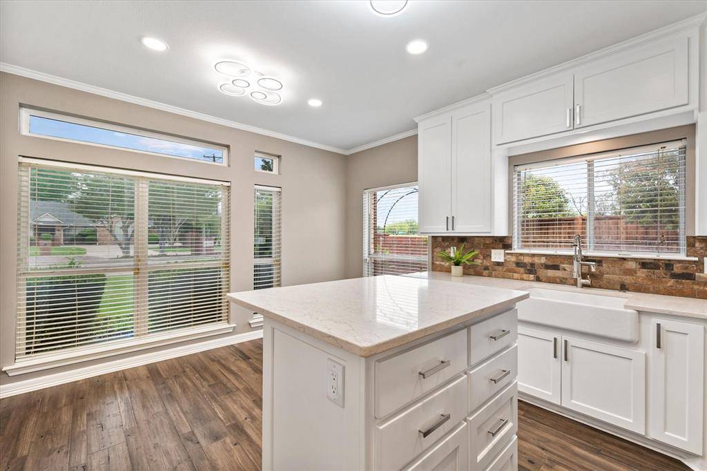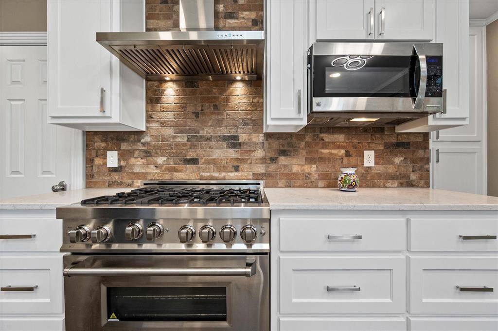 Chef's Kitchen: Fully updated with custom cabinetry, quartz countertops, a farmhouse sink, and a professional ZLINE appliance suite. The space includes a massive walk-in pantry and an elegant dining area.