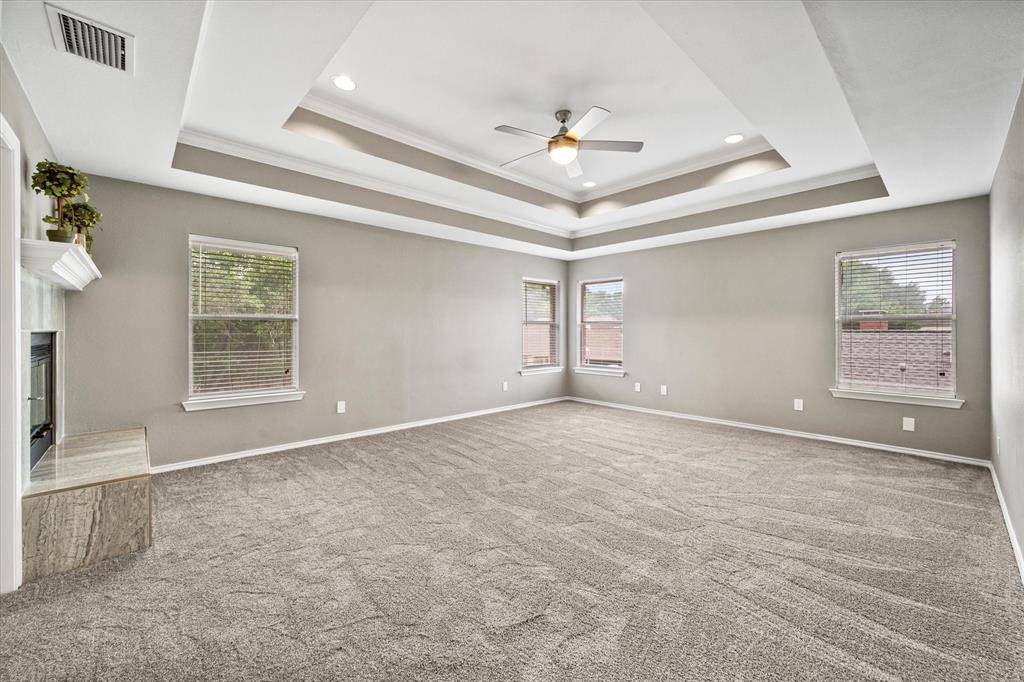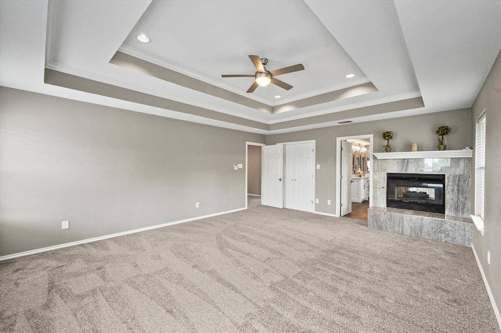 Primary Retreat: A true 'wing', featuring double tray ceilings and a see-through fireplace shared with the ensuite.