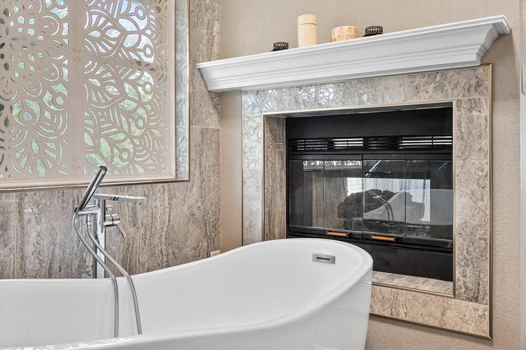 Spa Ensuite: Indulge in a massive walk-in shower, soaking tub, heated towel rack, and a custom-carved window feature.
