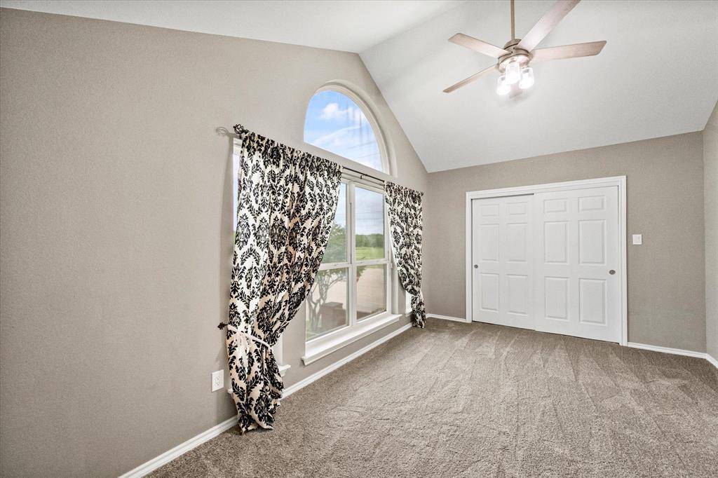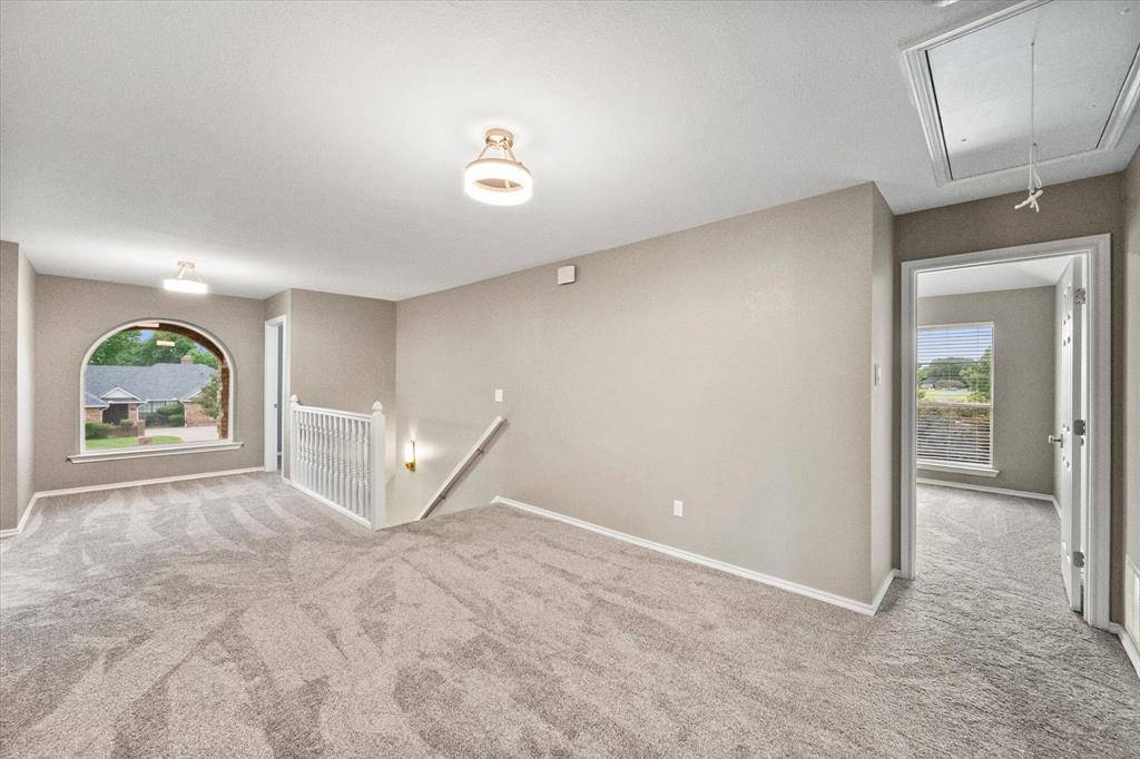 The upper level, finished with brand-new plush carpet, houses a second flex space and four oversized, light-filled secondary bedrooms.