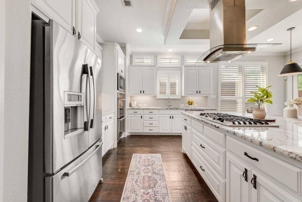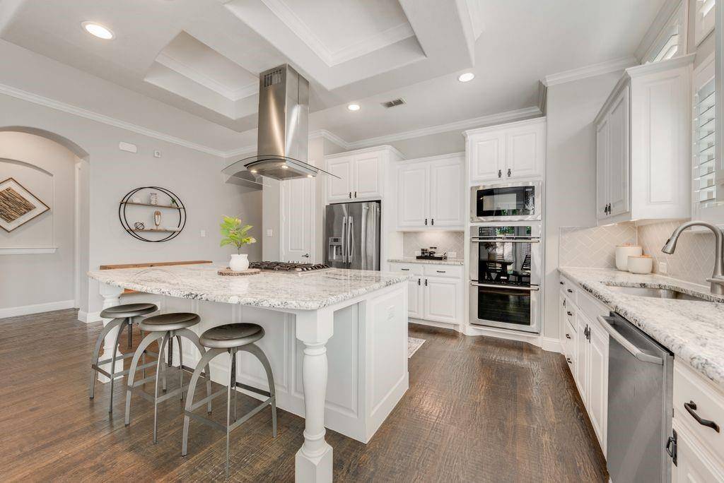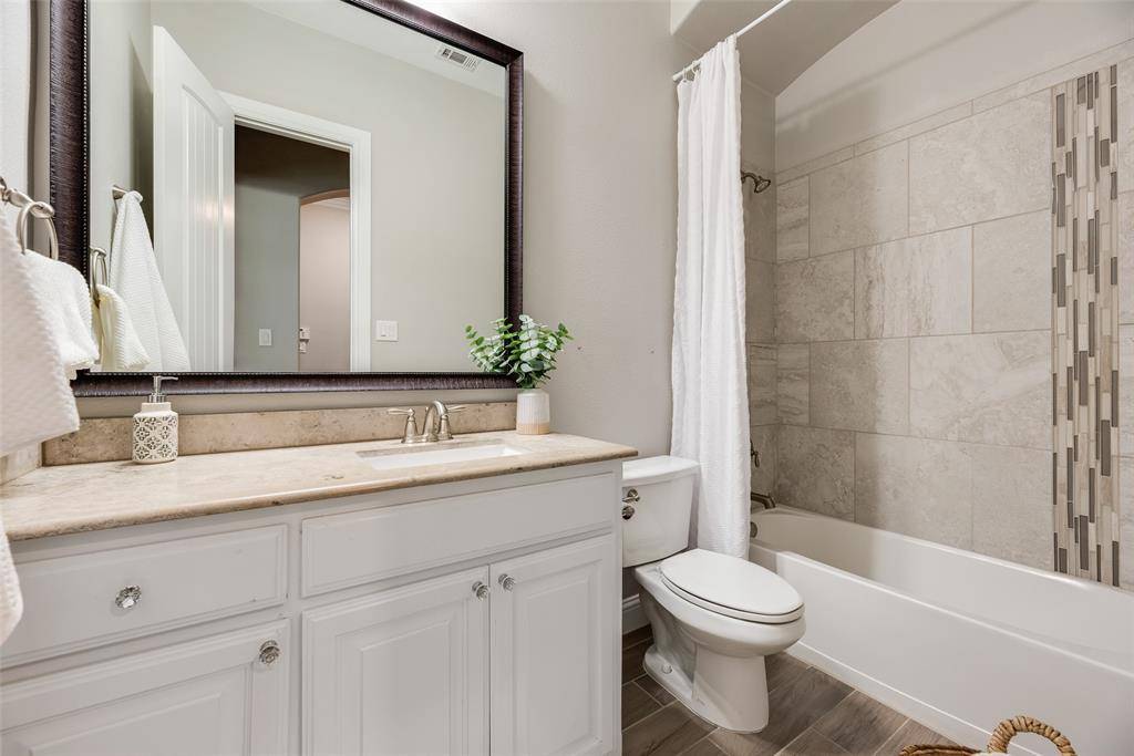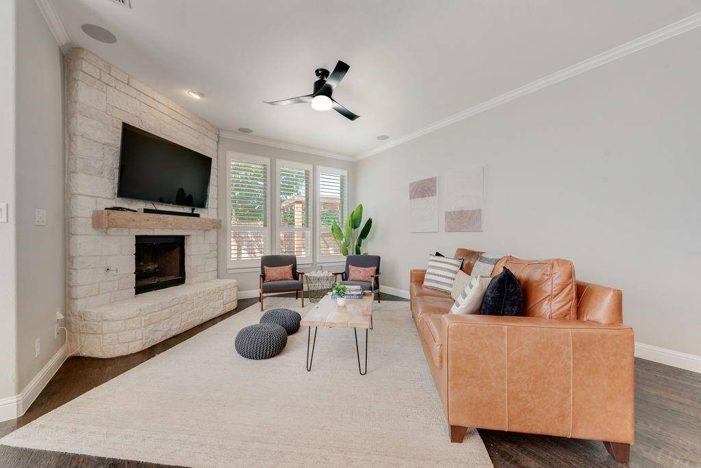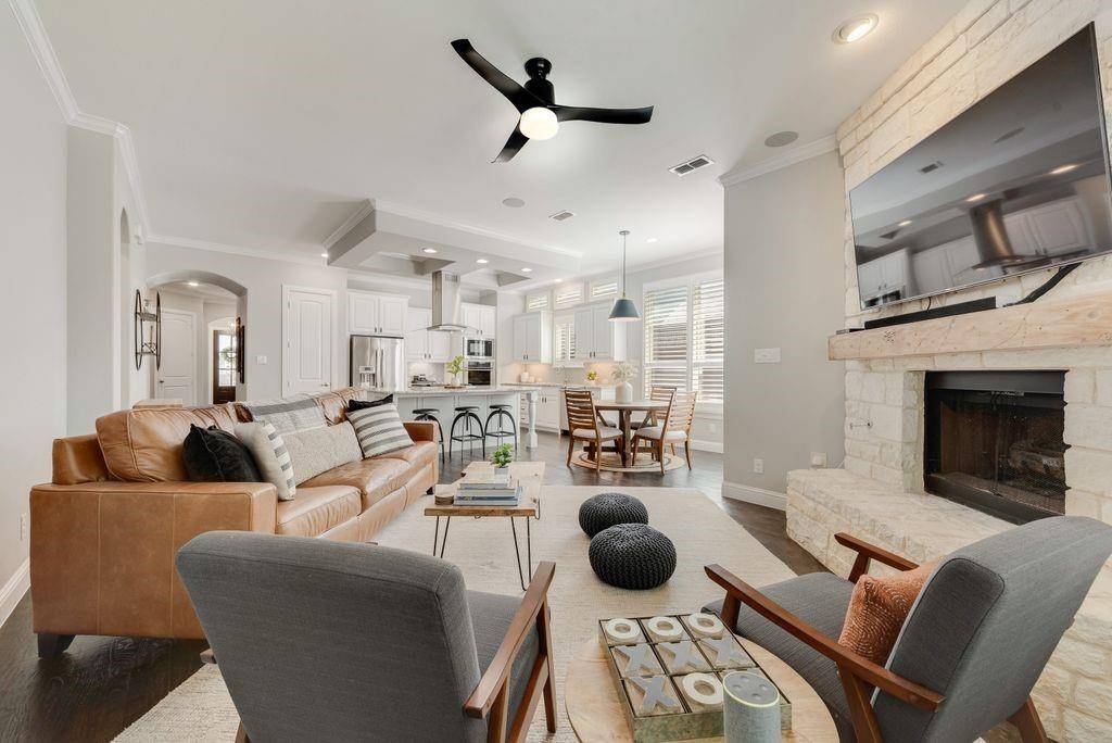 Turn-key charm, designer touches, everyday comfort, gated community, & Northwest ISD! Welcome to a home that just feels easy the moment you walk in. Tucked inside the gated Highlands Glen community in Roanoke, this 3-bedroom, 2-bath home offers a warm, inviting layout with thoughtful updates throughout, including fresh interior paint throughout. The open living and dining space is made for both relaxing and hosting, centered around a beautiful stone fireplace with a natural wood mantle. Hand-scraped hardwood floors, plantation shutters, 9-ft barn doors, and updated lighting add just the right amount of character without feeling overdone. The kitchen is truly the heart of the home. Featuring a large granite island, 5-burner gas cooktop, double ovens, and a butler's pantry that makes everyday living (and entertaining) a whole lot easier. You'll also find a flexible bonus space that can work as a home office, workout area, or second living space, whatever fits your life best. The extended laundry room connects directly to the primary closet (one of those little things that makes a big difference), and the primary bath offers a clean, spa-like feel with updated tile and a rain shower. Out back, the custom wood pergola creates a perfect spot to unwind, while the mature landscaping, including magnolia trees and stone-lined beds, adds to the home's curb appeal. Green grass photo enhancement and lawn improvement for backyard. With a roof replacement in 2024, an oversized garage with upgraded epoxy flooring, and access to community amenities like a pool, pavilion, and trails, this home checks the boxes for both comfort and convenience. Plus, you're just minutes from Byron Nelson High School, shopping, dining, and major highways. A truly charming home filled with modern touches and everyday comfort. Don't miss your chance to make it yours!
