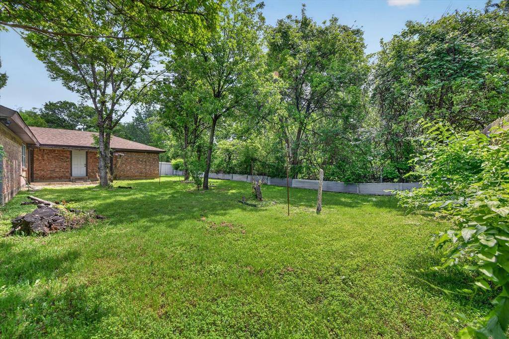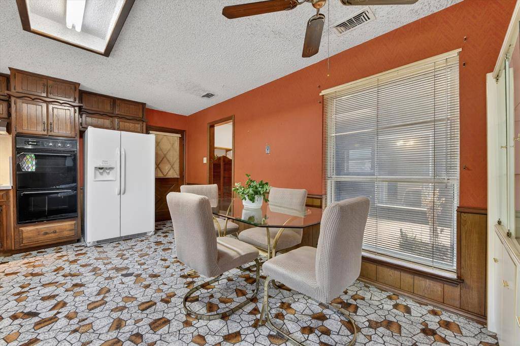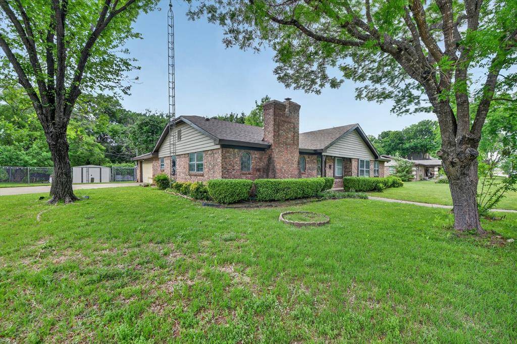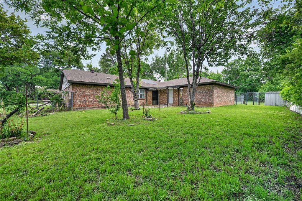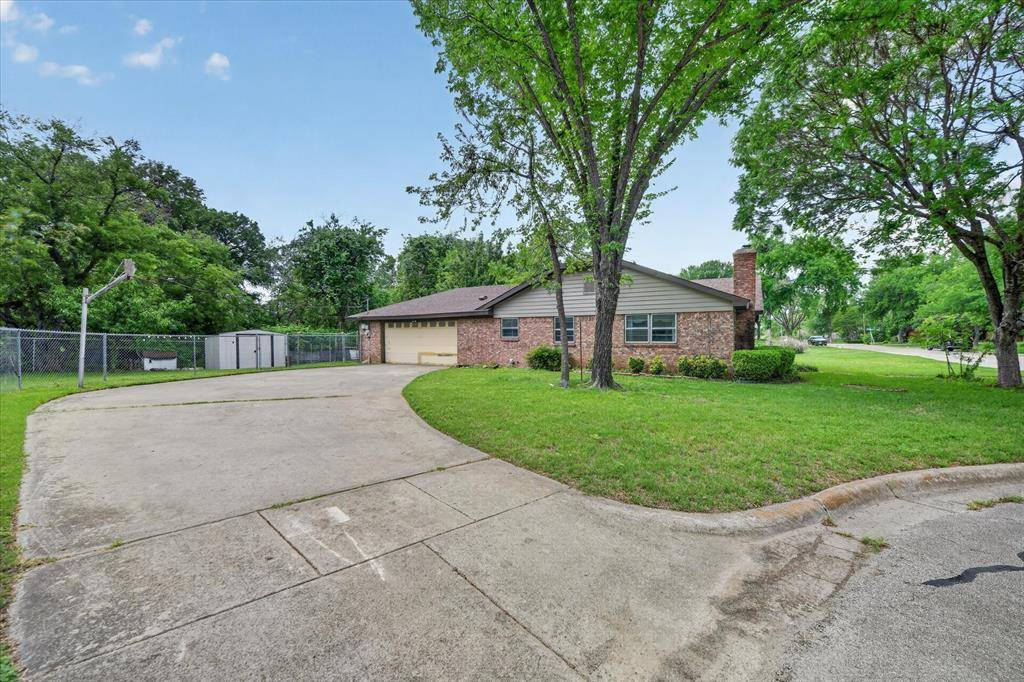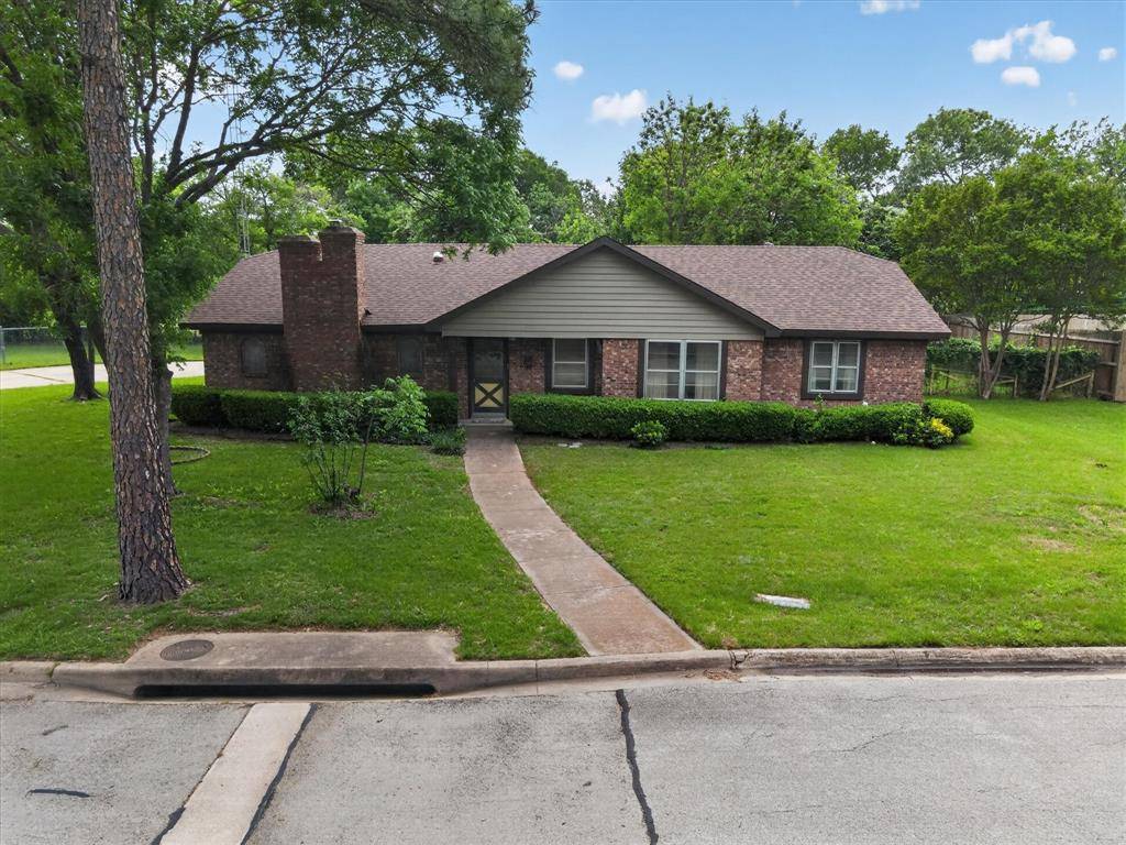 Welcome to this nearly half-acre property tucked away on a quiet cul-de-sac in North Richland Hills. This home offers a great opportunity to personalize and add your own touches. The spacious living room features vaulted ceilings and a cozy wood-burning fireplace, creating a warm and inviting atmosphere. Just off the living area, you'll find a charming private courtyard—perfect for morning coffee, container gardening, or a quiet outdoor retreat. The kitchen is functional and full of character, offering double ovens, cabinetry to the ceiling, and a quaint breakfast nook with built-in bench seating. A generously sized walk-in laundry room adds convenience. The primary suite includes an en suite bath with vintage finishes, providing a great canvas for future updates. Three additional bedrooms offer flexibility, with one easily serving as a home office complete with a built-in desk. The secondary bathroom features dual sinks for added functionality. Situated on a large lot with no HOA, this property offers space, charm, and plenty of potential. Conveniently located near major highways, DFW Airport, and close to both Dallas and Fort Worth.