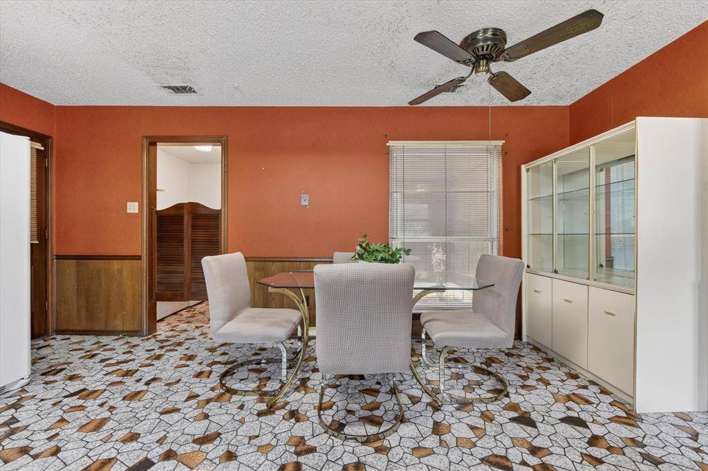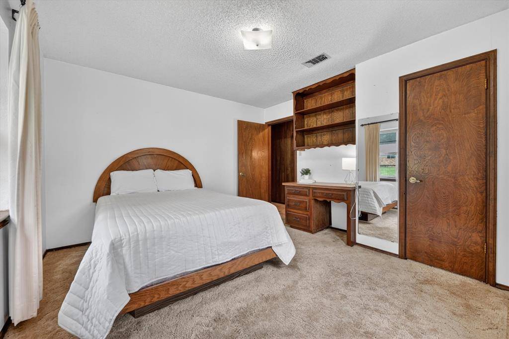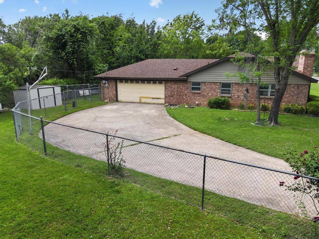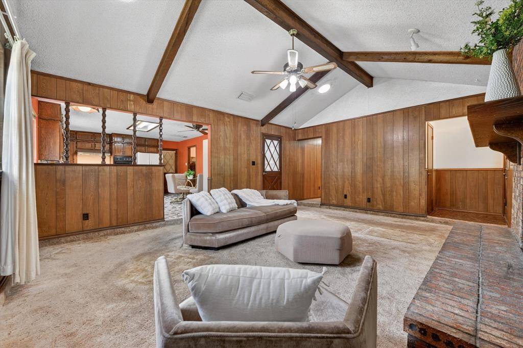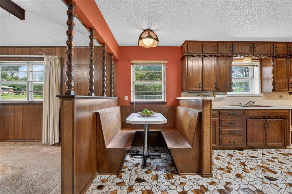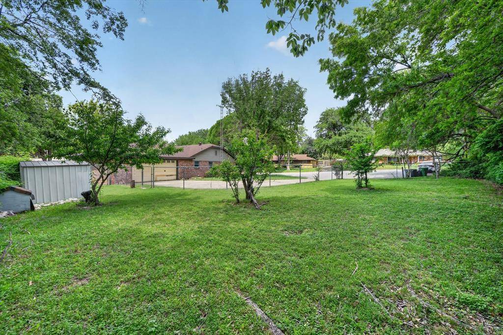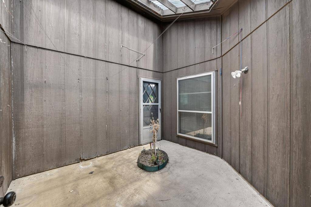 Welcome to this nearly half-acre property tucked away on a quiet cul-de-sac in North Richland Hills. This home offers a great opportunity to personalize and add your own touches. The spacious living room features vaulted ceilings and a cozy wood-burning fireplace, creating a warm and inviting atmosphere. Just off the living area, you'll find a charming private courtyard—perfect for morning coffee, container gardening, or a quiet outdoor retreat. The kitchen is functional and full of character, offering double ovens, cabinetry to the ceiling, and a quaint breakfast nook with built-in bench seating. A generously sized walk-in laundry room adds convenience. The primary suite includes an en suite bath with vintage finishes, providing a great canvas for future updates. Three additional bedrooms offer flexibility, with one easily serving as a home office complete with a built-in desk. The secondary bathroom features dual sinks for added functionality. Situated on a large lot with no HOA, this property offers space, charm, and plenty of potential. Conveniently located near major highways, DFW Airport, and close to both Dallas and Fort Worth.