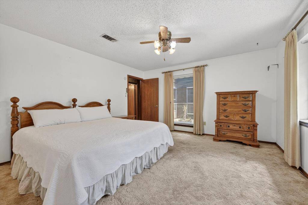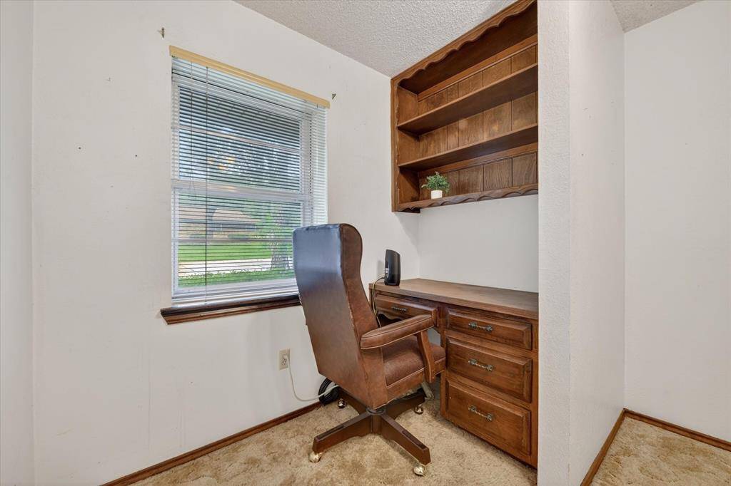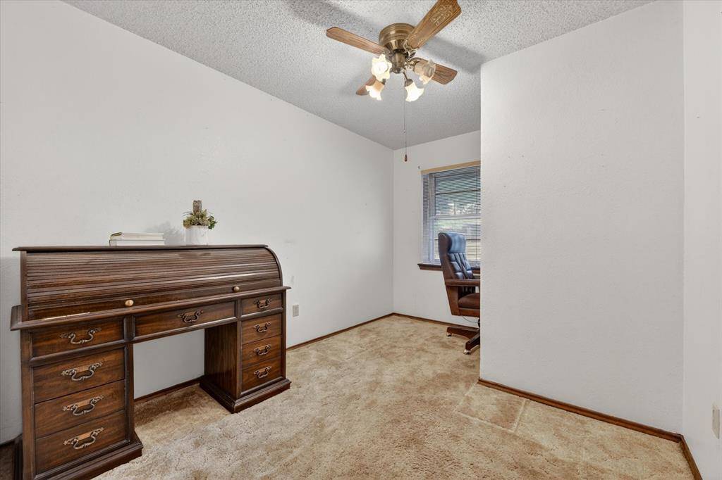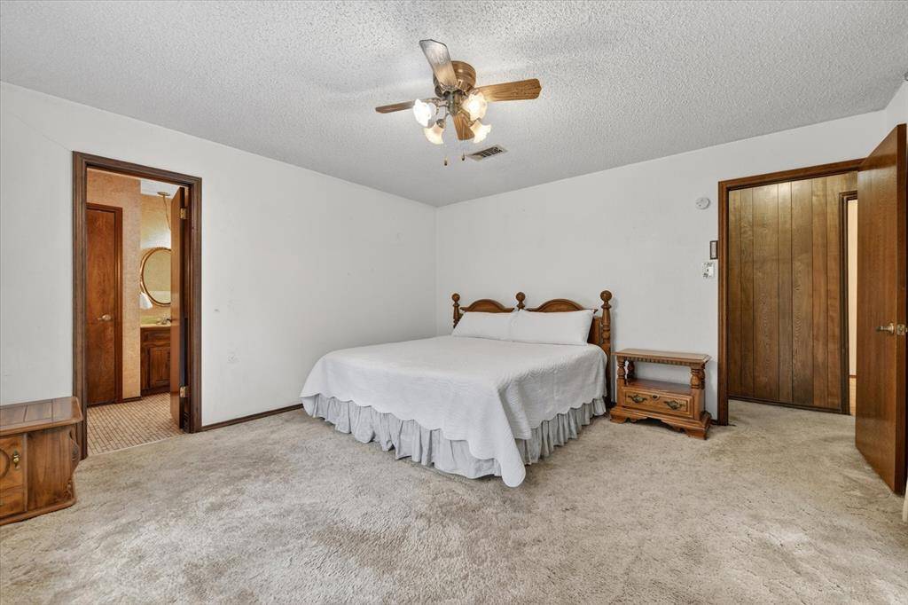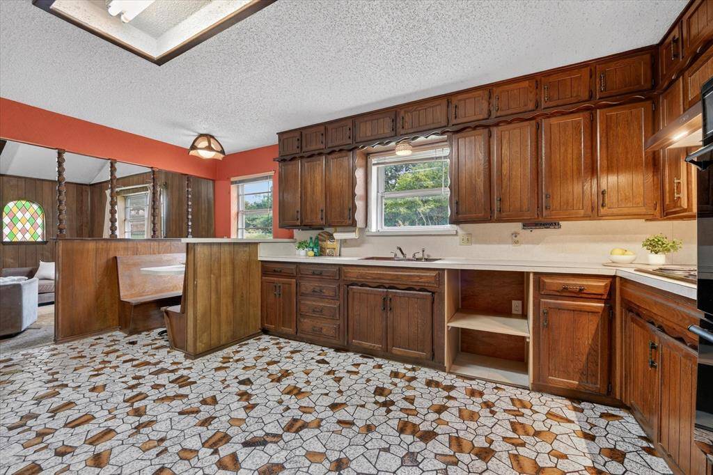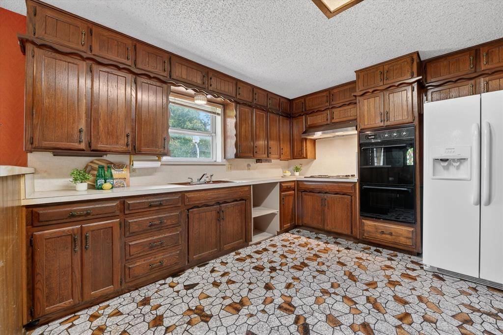 Welcome to this nearly half-acre property tucked away on a quiet cul-de-sac in North Richland Hills. This home offers a great opportunity to personalize and add your own touches. The spacious living room features vaulted ceilings and a cozy wood-burning fireplace, creating a warm and inviting atmosphere. Just off the living area, you'll find a charming private courtyard—perfect for morning coffee, container gardening, or a quiet outdoor retreat. The kitchen is functional and full of character, offering double ovens, cabinetry to the ceiling, and a quaint breakfast nook with built-in bench seating. A generously sized walk-in laundry room adds convenience. The primary suite includes an en suite bath with vintage finishes, providing a great canvas for future updates. Three additional bedrooms offer flexibility, with one easily serving as a home office complete with a built-in desk. The secondary bathroom features dual sinks for added functionality. Situated on a large lot with no HOA, this property offers space, charm, and plenty of potential. Conveniently located near major highways, DFW Airport, and close to both Dallas and Fort Worth.