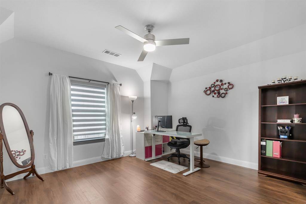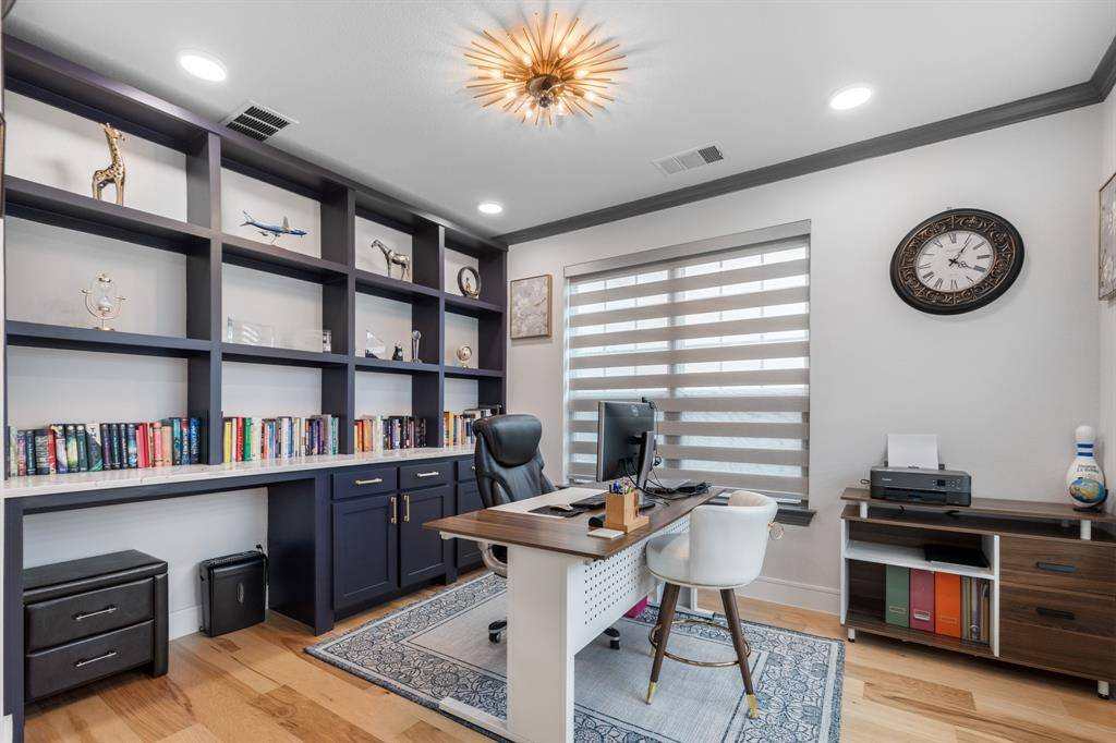 A dedicated home office with custom built-ins offers a polished and productive workspace, while the upper level features a versatile game room and a true media room, perfect for movie nights and gatherings.