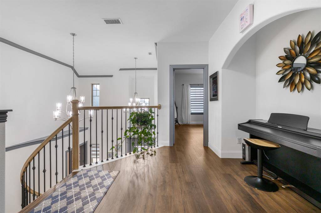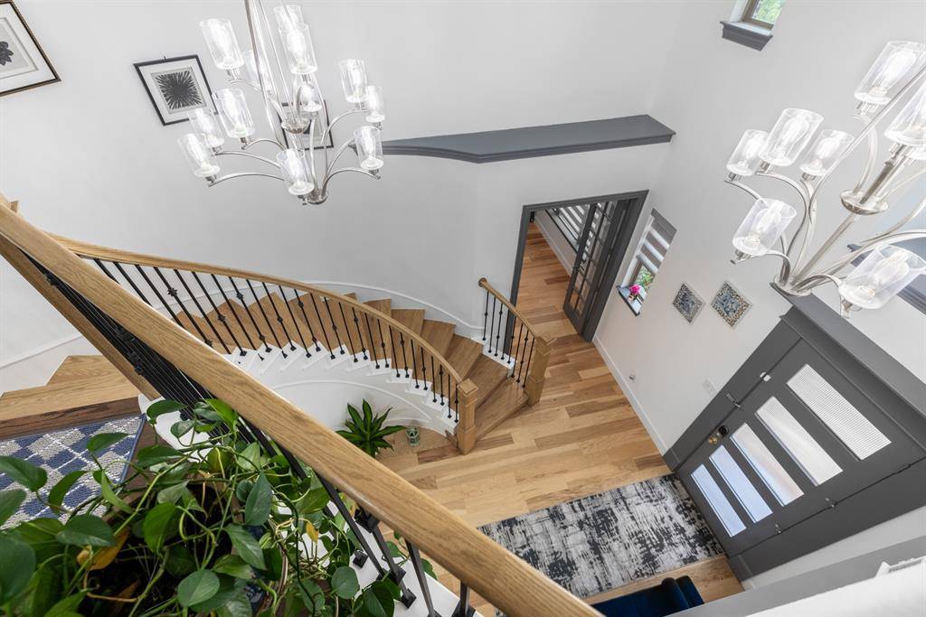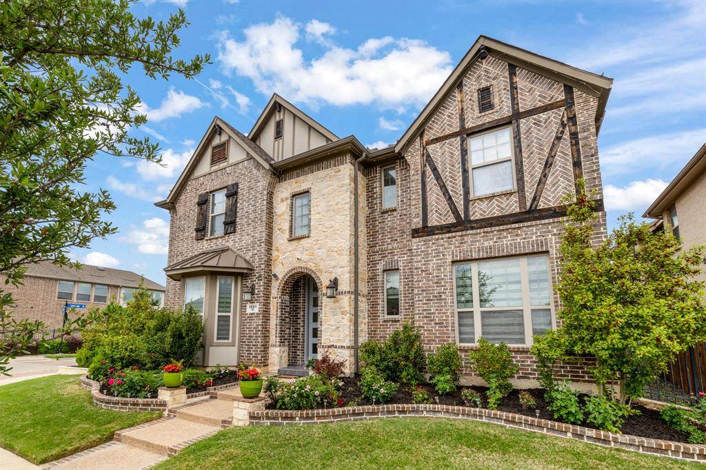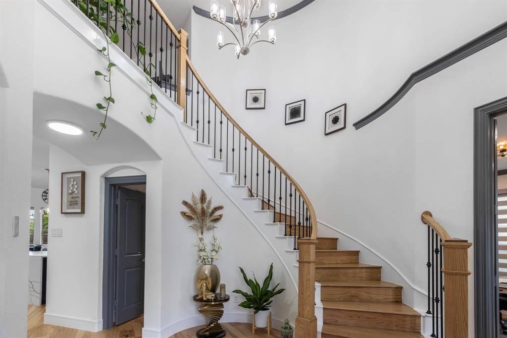 From the moment you arrive, the striking brick and stone façade, arched entry, and lush landscaping set an impressive tone. Inside, soaring ceilings, rich hardwood floors, and a sweeping curved staircase create a grand yet inviting first impression.
