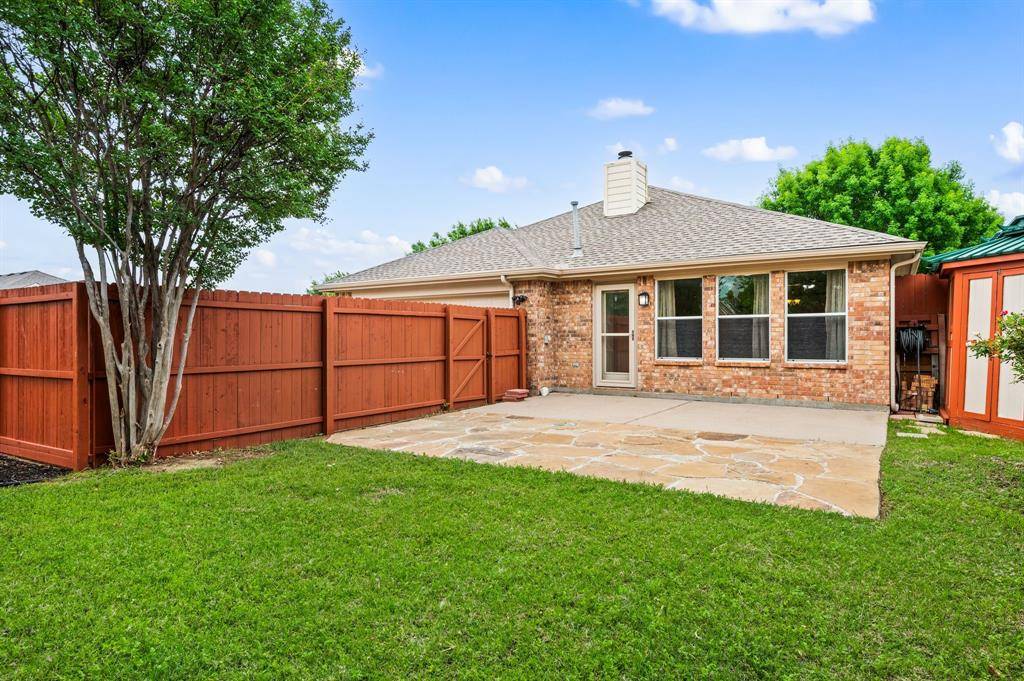 Situated on a premium corner lot backing to tranquil greenspace, this impeccably maintained single-story home is the definition of move-in ready, inviting, and ready for you to start your next chapter. From the moment you arrive, the charming front porch and lush, manicured landscaping create a warm welcome and undeniable curb appeal. Step inside to a light-filled and spotless interior where every space feels fresh, comfortable, and effortlessly livable. Just off the entry, a versatile front room with elegant lighting offers the flexibility to be a formal dining space, second living area, or private home office. The kitchen is bright, functional, and ready for everyday life, featuring a center island, crisp white cabinetry, and an easy flow into the cheerful breakfast nook. The adjoining living room is spacious and filled with natural light, highlighted by a wall of windows, a cozy brick fireplace, and direct access to the backyard, perfect for relaxing evenings or hosting guests. The primary suite is a true retreat with generous proportions and a well-appointed ensuite bath complete with a jetted tub and separate shower, ideal for unwinding at the end of the day. Step outside to a beautifully kept backyard, featuring an oversized extended patio, professional landscaping, and a newly built privacy fence. A storage shed and rear-entry two-car garage add extra convenience and storage. Home is equipped with a generator ready plug in allowing for easy and safe connection to a portable generator during power outages. Newer roof and recently painted exterior. Immaculate and move-in ready. This home is waiting for you!