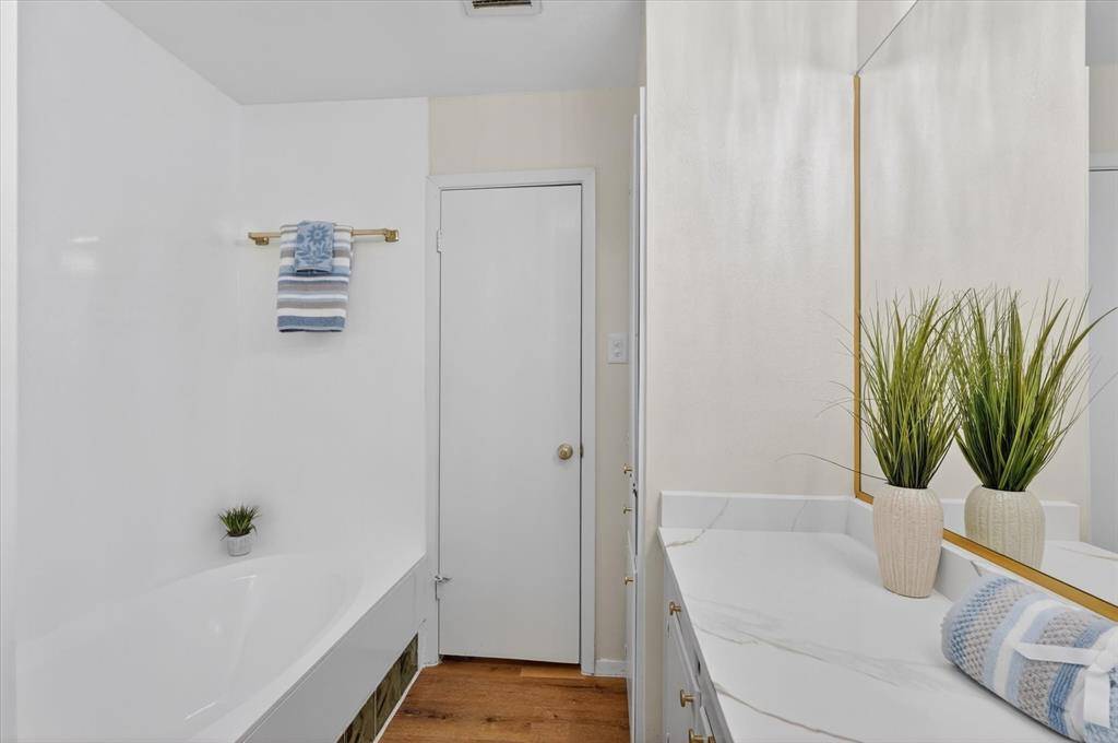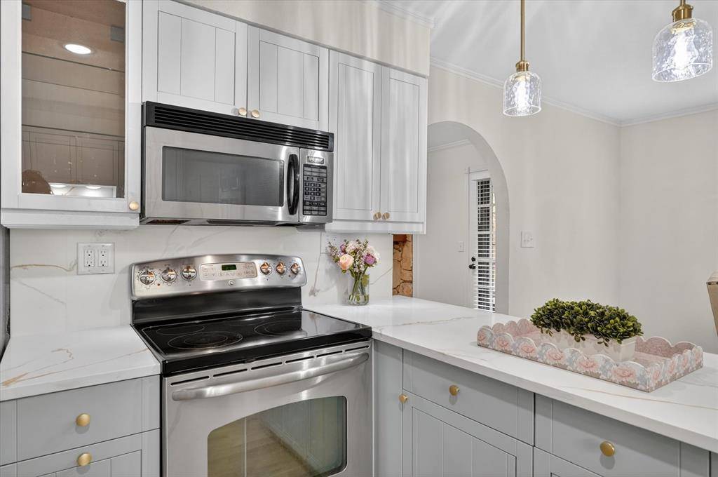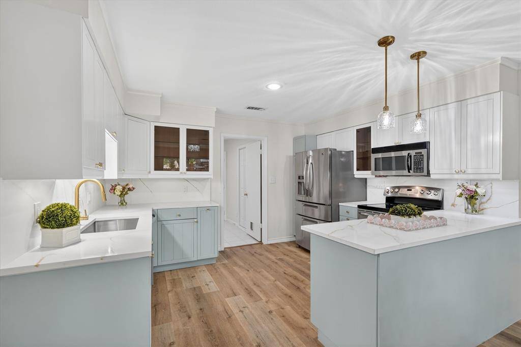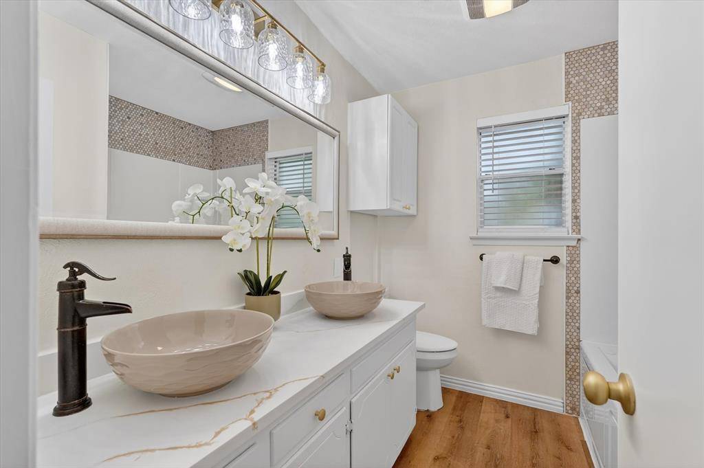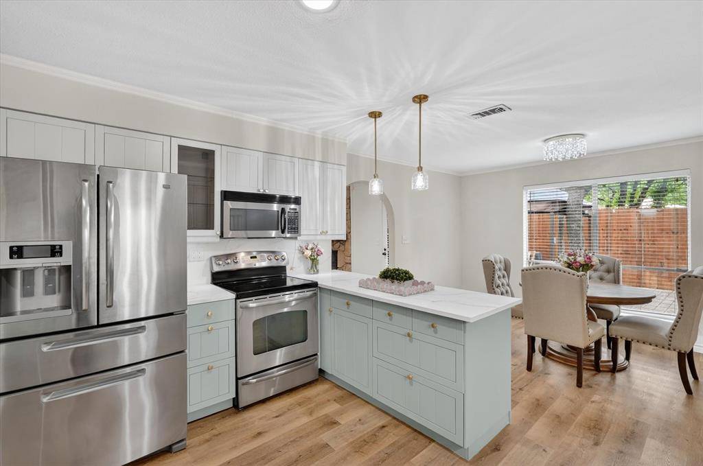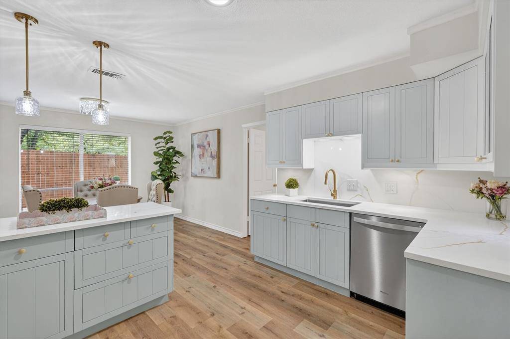 Welcome to your dream home in the heart of southwest Arlington! This stunning 4-bedroom, 2-bathroom gem is perfectly nestled on a sprawling corner lot, offering unparalleled curb appeal. Step inside this completely renovated home sweet home and be greeted by soaring vaulted ceilings that create an open, airy ambiance throughout. Every detail has been thoughtfully curated with modern living in mind—boasting brand-new luxury plank flooring and designer details throughout that exude elegance. The kitchen is a chef's delight with sleek new quartz countertops, stainless steel appliances and stylish faucets, ensuring every culinary adventure is undertaken in style. The expansive living space seamlessly extends outdoors to a GORGEOUS backyard oasis—perfect for hosting gatherings or enjoying serene evenings under the stars. Comfort meets efficiency with the newly installed HVAC system for year-round climate control. Located in a vibrant community rich with amenities and top-tier schools, this home offers everything you've been searching for and more. Don't miss your chance to experience this masterpiece of design and function in one of Arlington's most desired neighborhoods! Award winning schools - Ditto, Young and Martin!!
