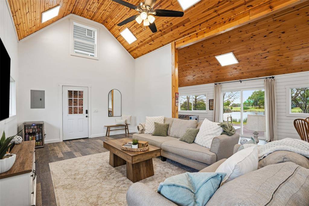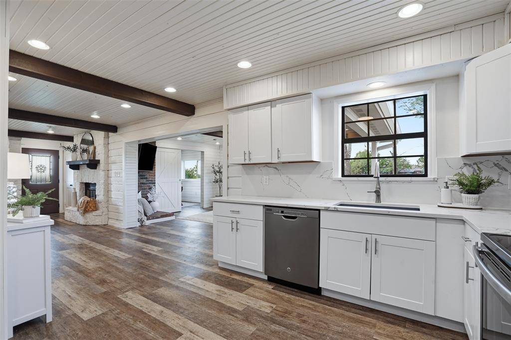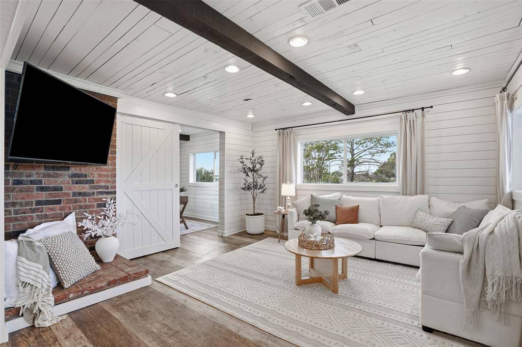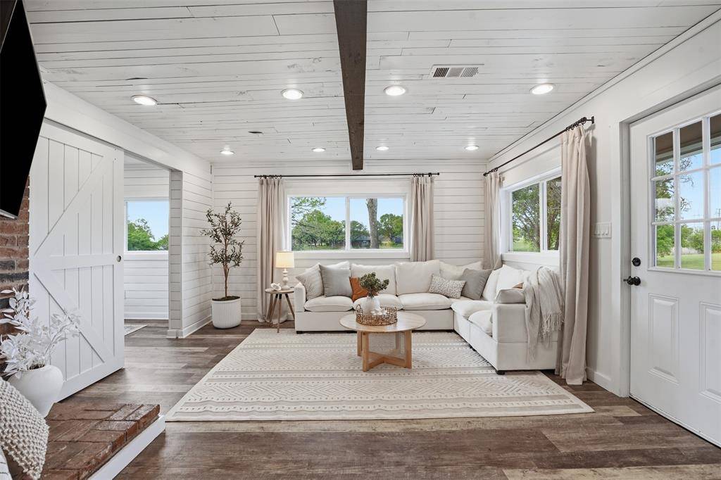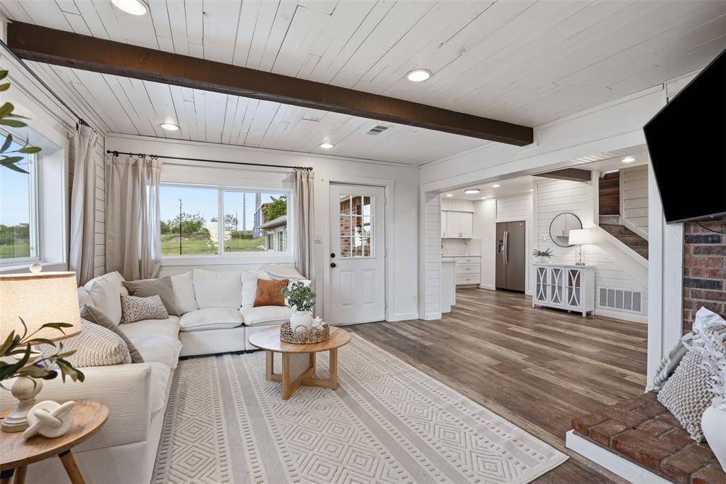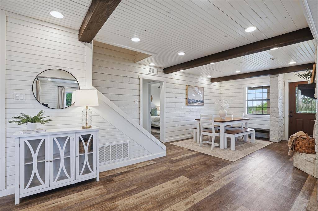 Welcome to your private Texas retreat on 5 picturesque acres in sought-after Roanoke. This beautifully updated 3-bedroom, 2-bath farmhouse blends modern comfort with timeless charm, all just minutes from Hwy 170, 114, and I-35 for ultimate convenience. Step inside to an inviting open-concept layout featuring fresh paint, abundant natural light, and stunning farmhouse details including shiplap walls, exposed wood beams, and warm flooring throughout. The spacious living areas offer a seamless flow for both everyday living and entertaining, centered around a cozy fireplace and thoughtfully designed gathering spaces. The updated kitchen showcases crisp white cabinetry, sleek countertops, stainless steel appliances, and ample prep and storage space—perfect for hosting or daily life. Outdoors is where this property truly shines. Enjoy peaceful mornings and relaxing evenings overlooking your spring-fed fishing pond, complete with a dock and scenic views. Mature shade trees create a tranquil setting, while the expansive acreage offers endless possibilities for recreation, animals, or simply enjoying wide-open space. A standout feature is the impressive 4,000 sq ft shop with spray foam insulation—ideal for business owners, hobbyists, or those needing substantial workspace, storage, or equipment housing. Whether you're seeking a private homestead, a live-work property, or a place to spread out and unwind on the weekend, this rare Roanoke acreage offers the perfect combination of location, functionality, and charm.