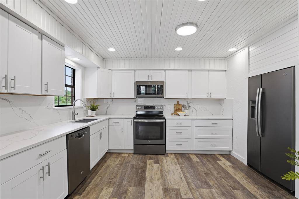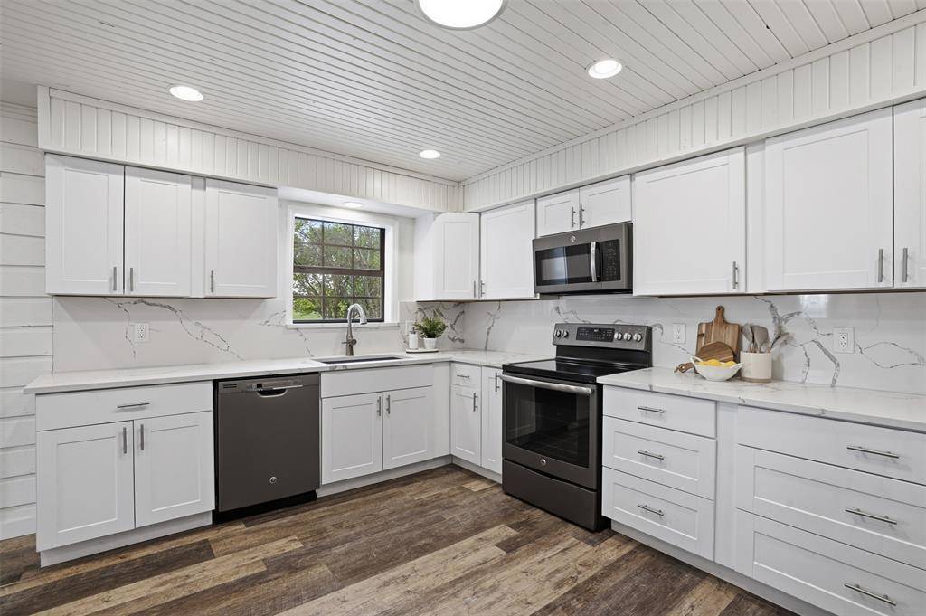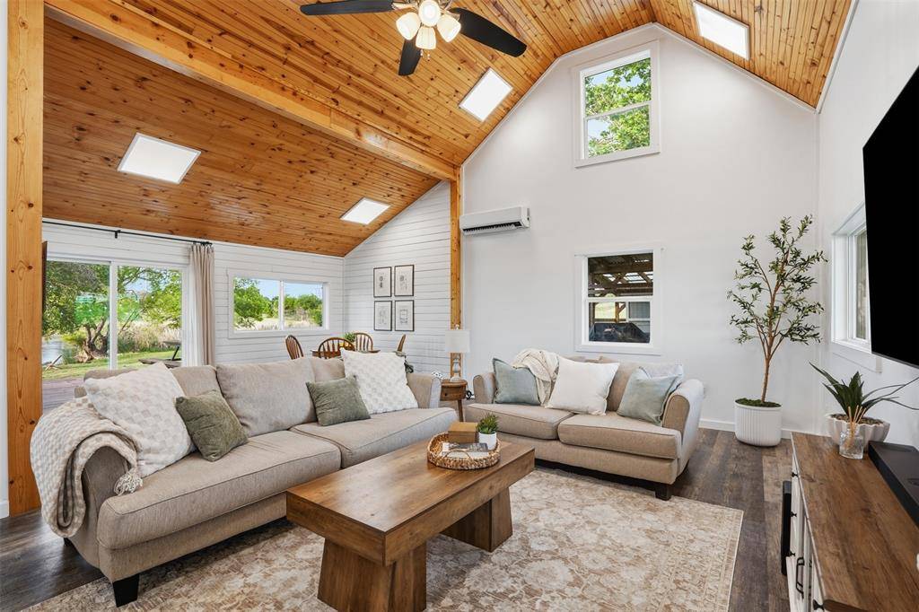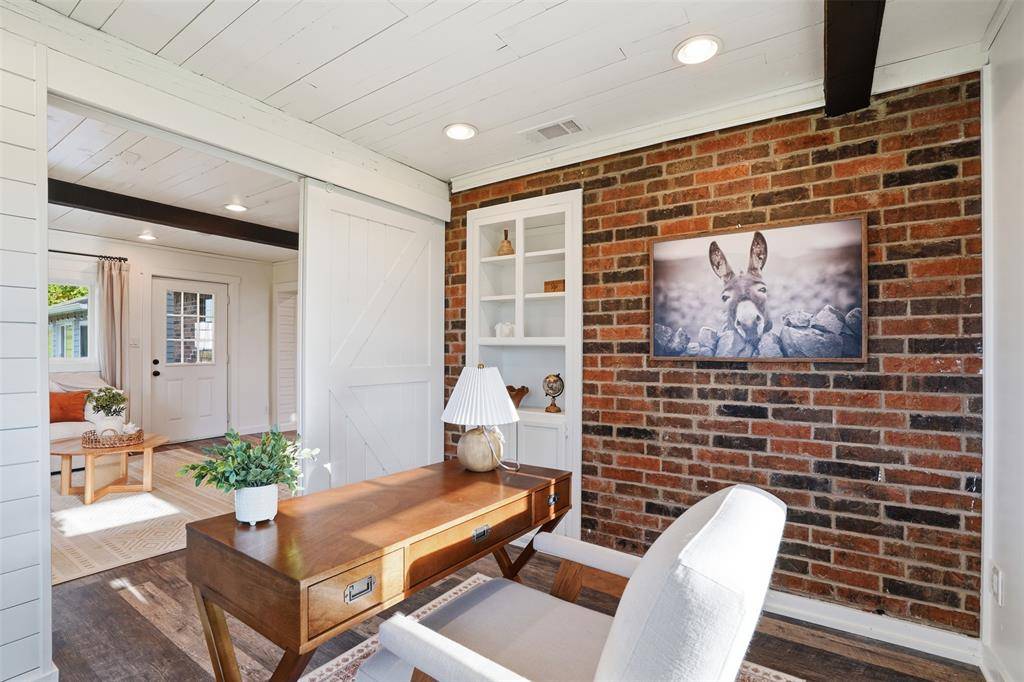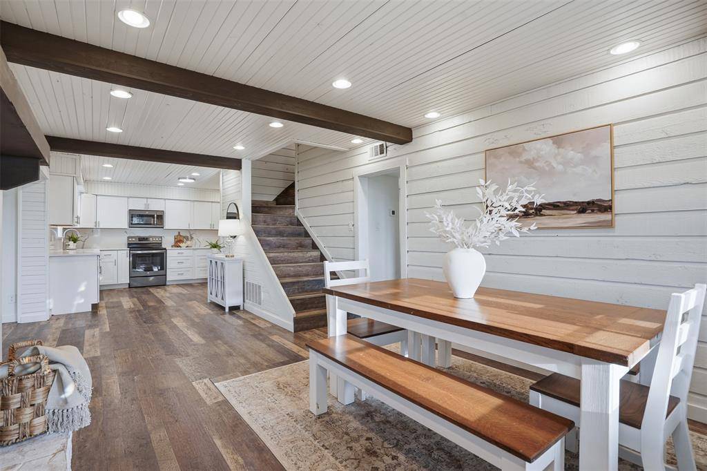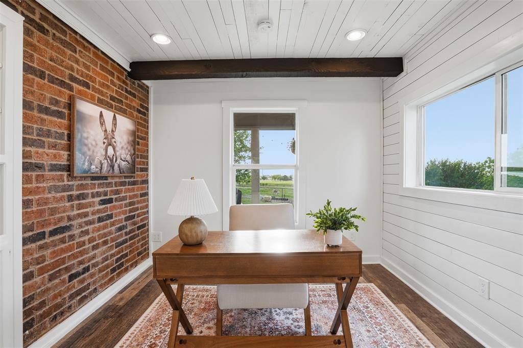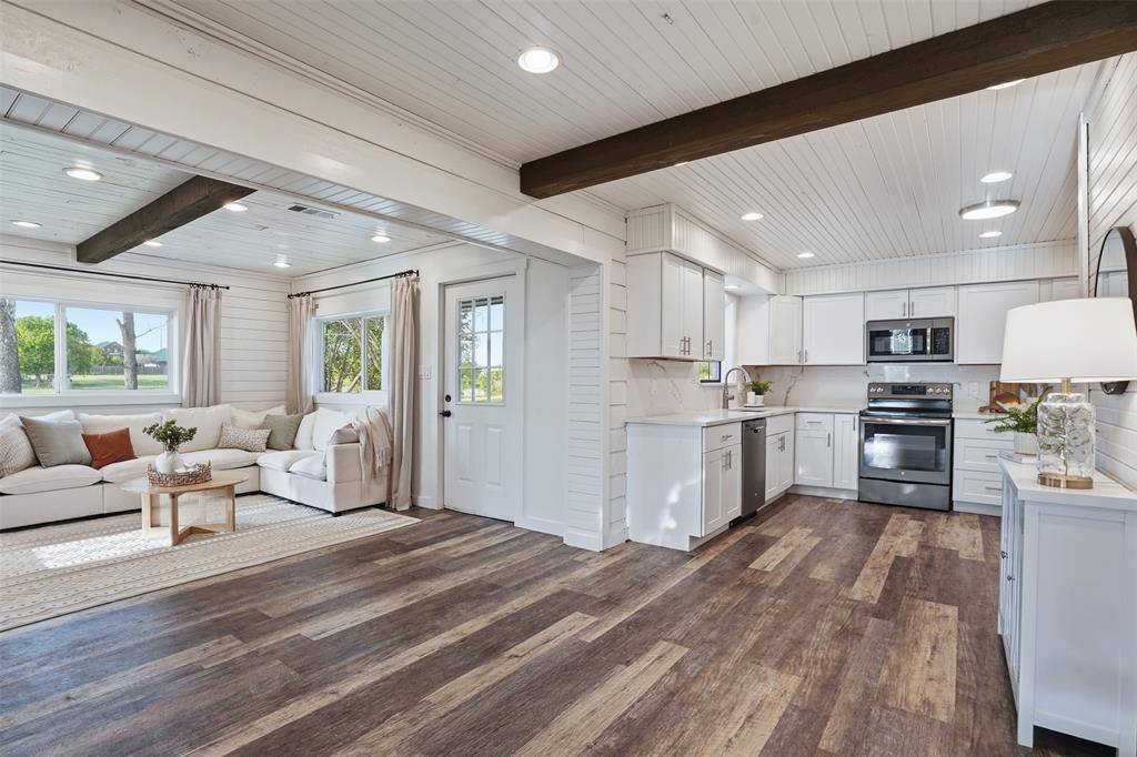 Welcome to your private Texas retreat on 5 picturesque acres in sought-after Roanoke. This beautifully updated 3-bedroom, 2-bath farmhouse blends modern comfort with timeless charm, all just minutes from Hwy 170, 114, and I-35 for ultimate convenience. Step inside to an inviting open-concept layout featuring fresh paint, abundant natural light, and stunning farmhouse details including shiplap walls, exposed wood beams, and warm flooring throughout. The spacious living areas offer a seamless flow for both everyday living and entertaining, centered around a cozy fireplace and thoughtfully designed gathering spaces. The updated kitchen showcases crisp white cabinetry, sleek countertops, stainless steel appliances, and ample prep and storage space—perfect for hosting or daily life. Outdoors is where this property truly shines. Enjoy peaceful mornings and relaxing evenings overlooking your spring-fed fishing pond, complete with a dock and scenic views. Mature shade trees create a tranquil setting, while the expansive acreage offers endless possibilities for recreation, animals, or simply enjoying wide-open space. A standout feature is the impressive 4,000 sq ft shop with spray foam insulation—ideal for business owners, hobbyists, or those needing substantial workspace, storage, or equipment housing. Whether you're seeking a private homestead, a live-work property, or a place to spread out and unwind on the weekend, this rare Roanoke acreage offers the perfect combination of location, functionality, and charm.