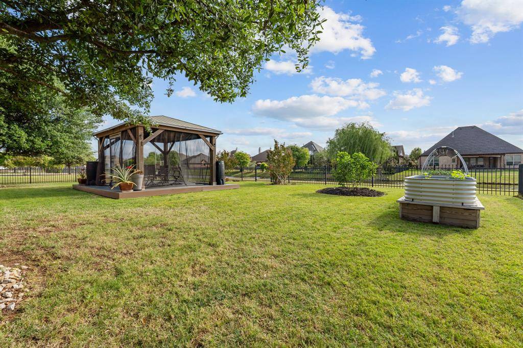 Step into comfort and style in this immaculate 4-bedroom, 3-bath home with a dedicated office and a thoughtfully designed split floorplan. Inside, custom-style finishes elevate the entire home—from rich hardwood flooring and elegant tray ceilings to upgraded crown molding, decorative trim, custom cabinetry, window shutters, refreshed paint and updated granite countertops. A private guest suite offers ideal space for multigenerational living or extended stays. In the primary suite you will find a large room with tray ceiling, and a spa-like bath with soaking tub, separate shower, dual vanities, and a sizable walk-in closet with seasonal racks. The backyard is a true outdoor haven, featuring an extended covered patio, a gazebo with electricity, a soothing water feature, and peaceful canal views. Vibrant landscaping and fruit trees add to the beauty. Even the behind-the-scenes features impress, including a whole-home water filtration system, water softener, hot water circulation pump, and a storage room in the attic. Located in the gated community of Abes Landing, residents enjoy sidewalks, a clubhouse, and a community pool. Just minutes from Granbury, known for its charming downtown square, great schools, and Lake Granbury recreation. With stunning curb appeal and meticulous upkeep, this home is a stand out!